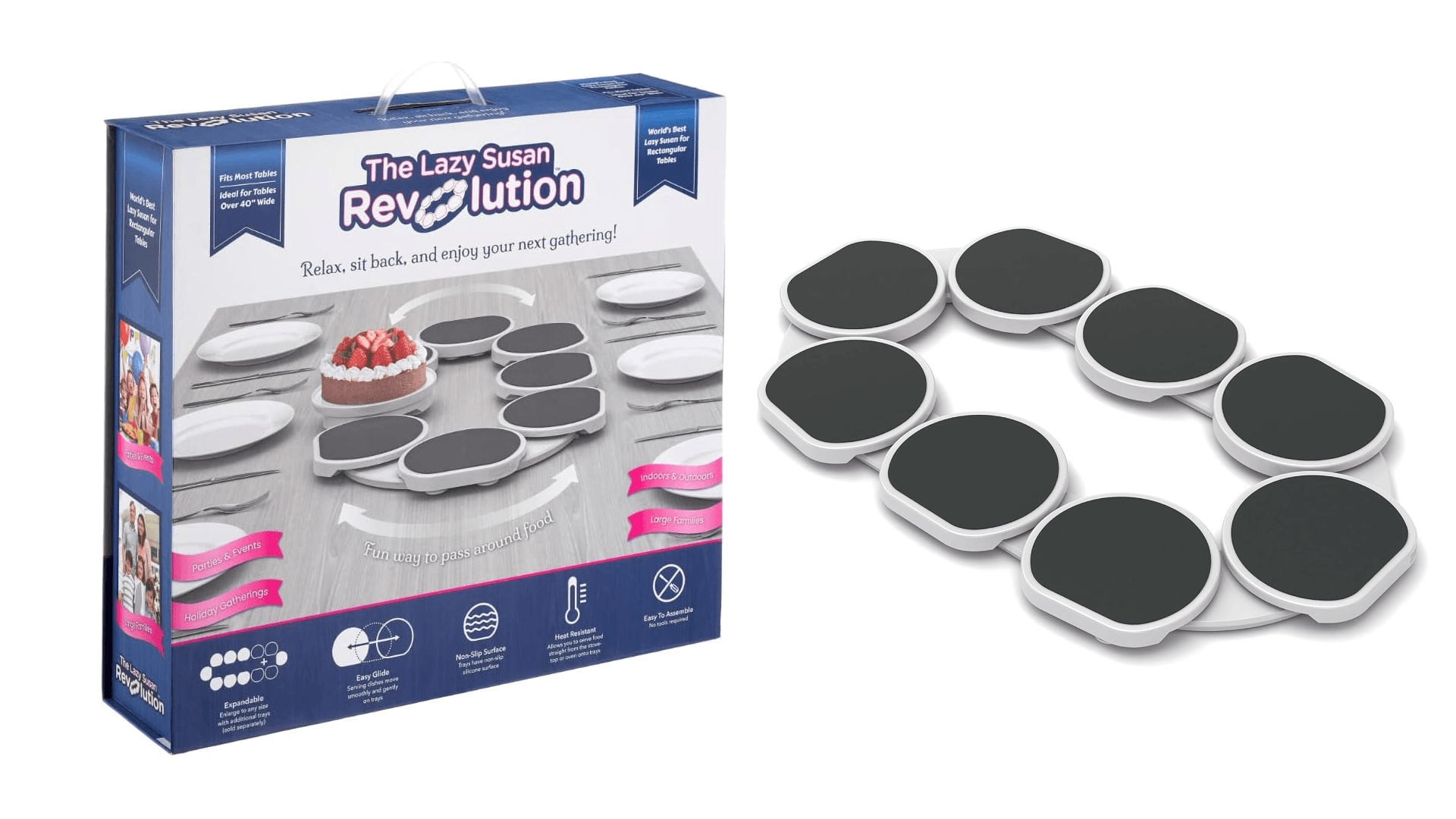 This tabletop lazy Susan allows guests to easily serve themselves. It comes with tracks and eight trays that you can customize based on the size of your table. To use, fit the tracks together and place a number of heat-resistant trays on top (depending on how many dishes you’re serving). Guests can glide dishes to their seats when it’s time to eat. ({{dynamicPrice}}, Amazon)