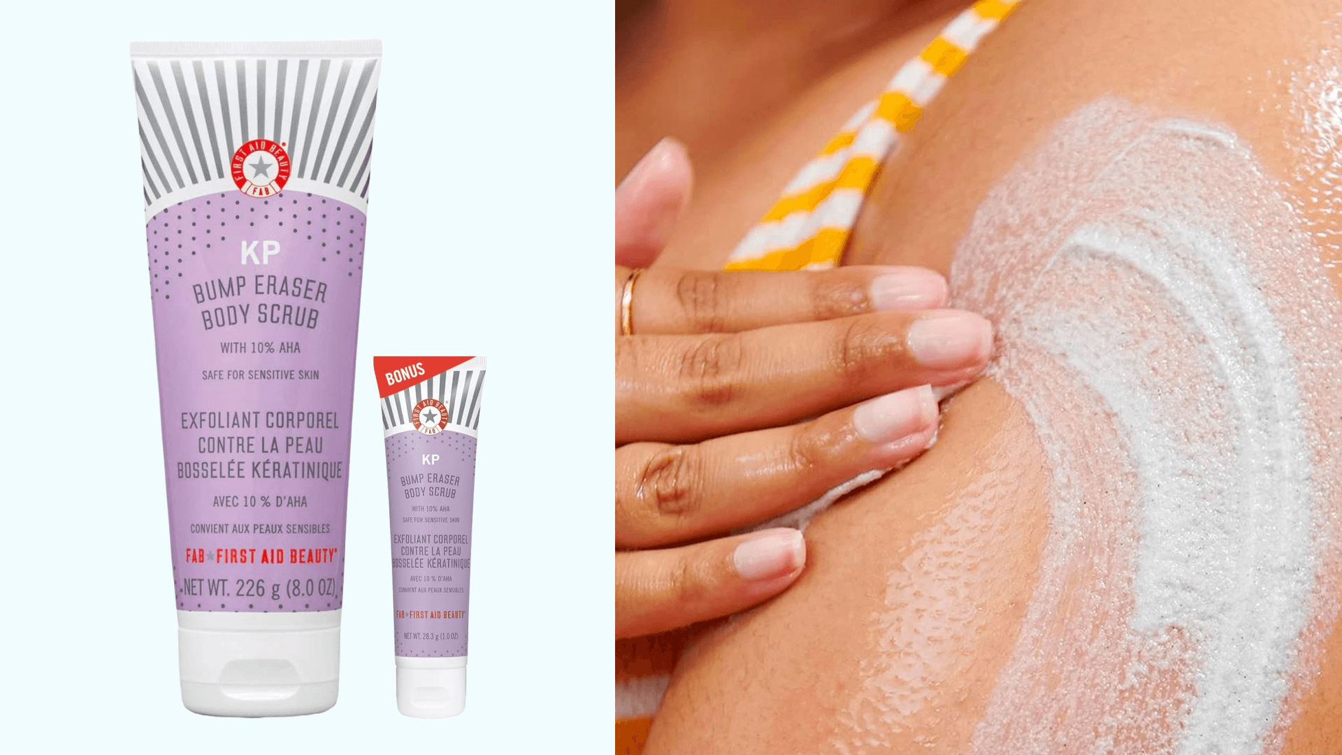 I struggle with strawberry skin and keratosis pilaris, and this exfoliator from First Aid Beauty has been a lifesaver. I have sensitive skin and find that this one isn’t too intense. I just mix it with a little bit of water in the shower and massage it all over my body. Because it’s both a physical and chemical exfoliant, I’ve noticed results after a couple uses. This bundle even comes with a travel-sized version. ({{dynamicPrice}}, Amazon)