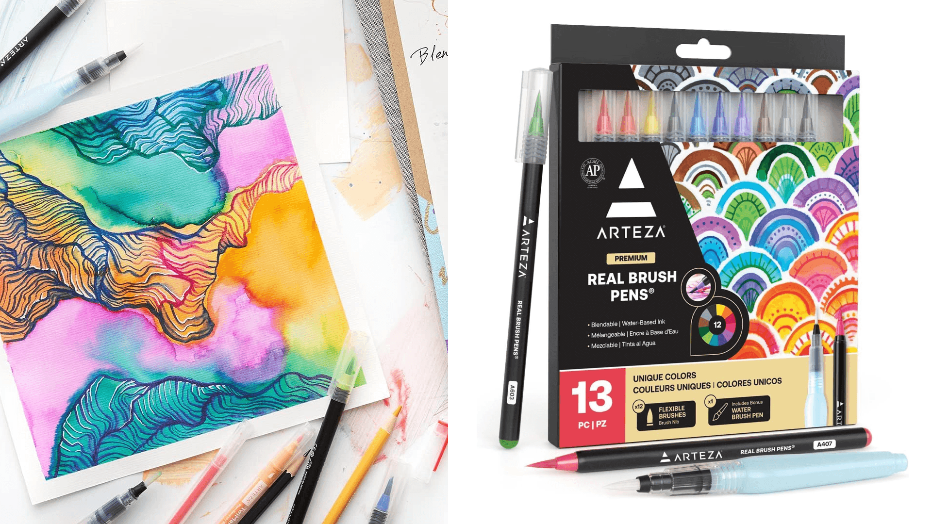 You can get the look of watercolors without having to repeatedly change your water cup. This set of 12 colors has brush tips that are perfect for coloring books or free drawing. You can use the pens on their own or you can add water if you want an even more watercolor-esque look. ({{dynamicPrice}}, Amazon)