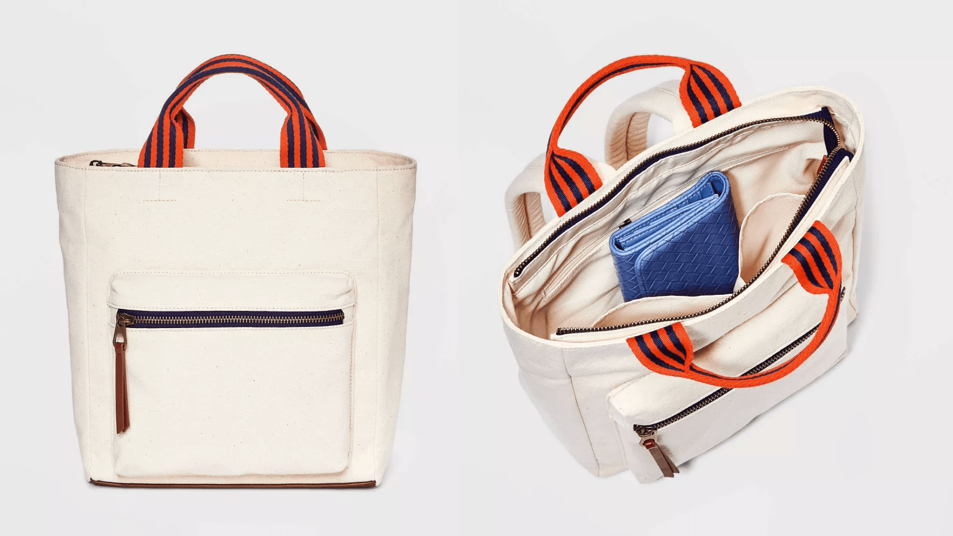 If you aren’t turning to Target for budget-friendly clothing and accessories, then what are you doing? Even though this one is technically a mini bag, it’s perfect if you have to take a couple items with you to work. It has double handles, adjustable backpack straps, and multiple pockets. And if you’re looking for a smaller, less expensive diaper bag that you don’t want to be too precious with, this one will do the trick. ($28, Target)