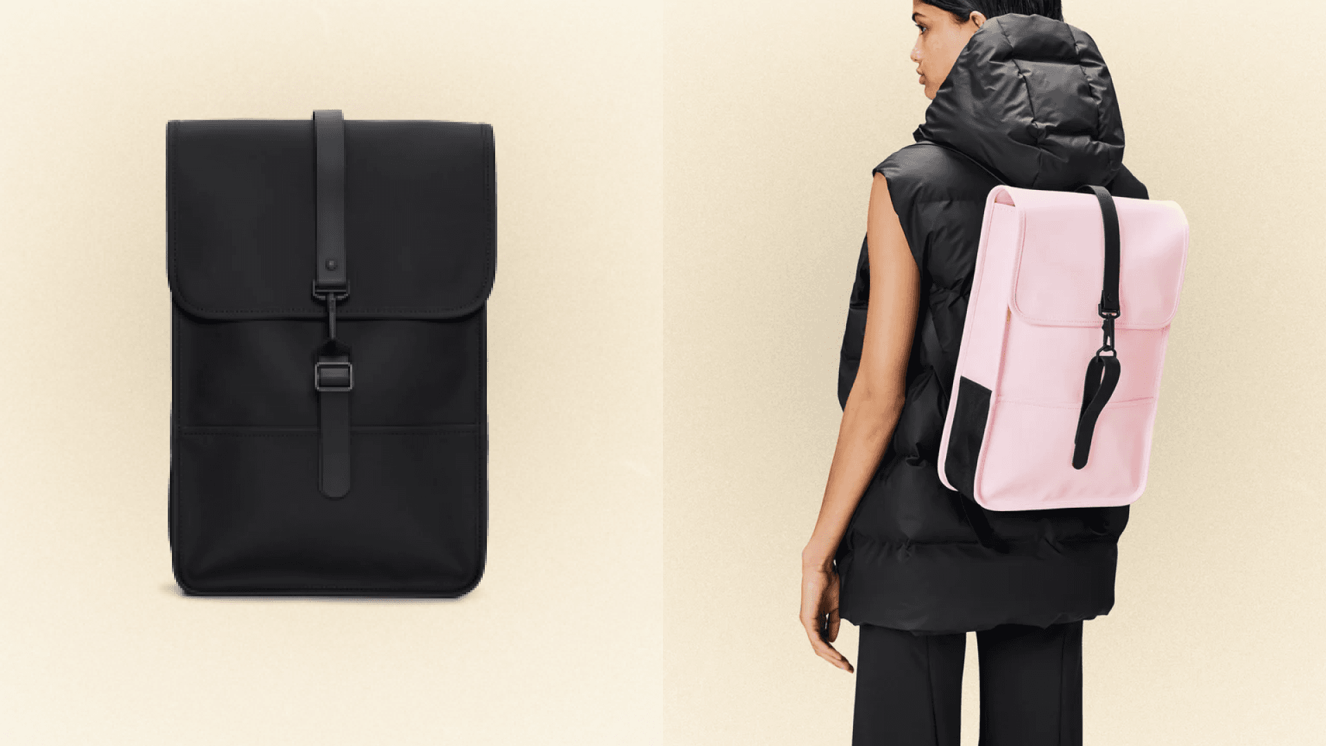 This sleek design comes in a number of neutral colors, plus pink. If you’re someone who prefers something minimalist, look no further. It’s not too chunky or large — and has an internal laptop slot, roomy main compartment, and concealed external phone pocket, which is extremely useful. All you need now is the matching rain coat, and you’re set. ($110, Rains)