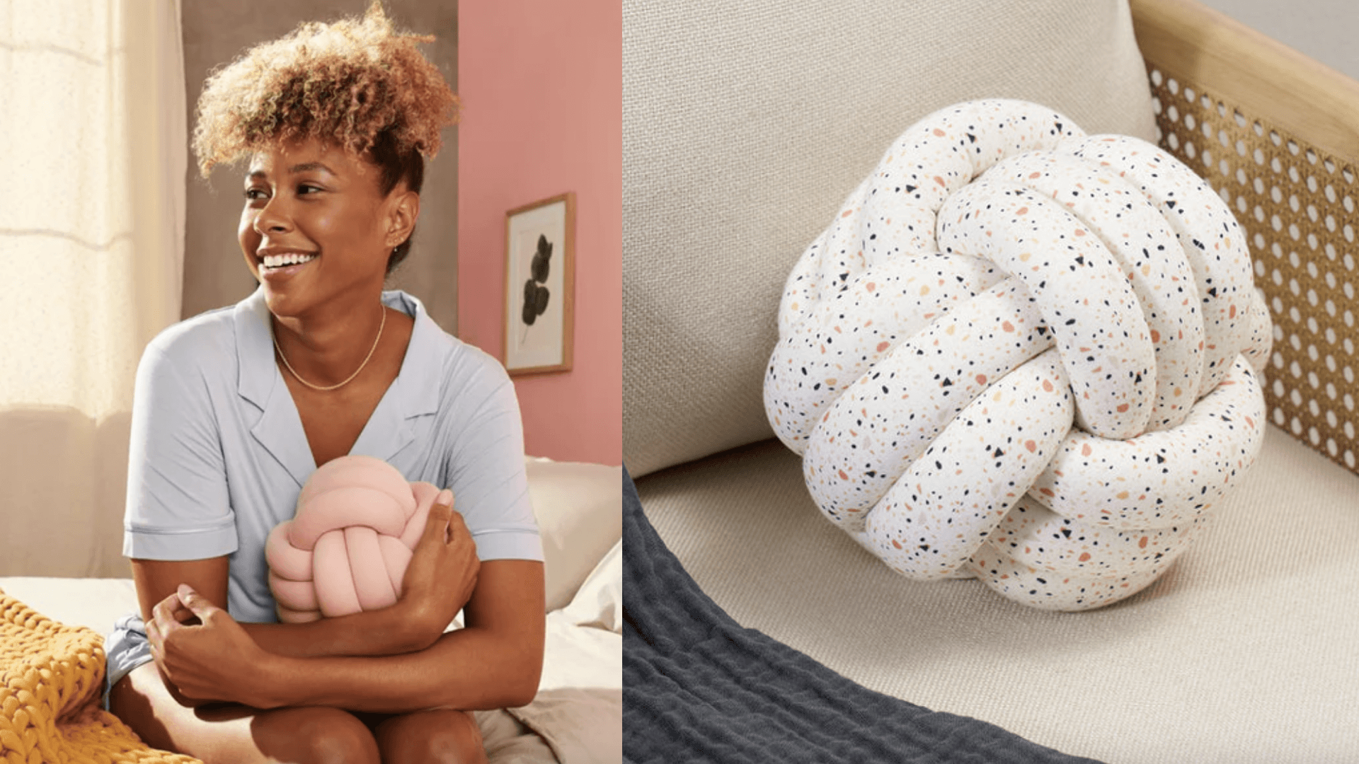 Perfect for overwhelming work-from-home days or evening binge-watching, Bearaby’s Hugget provides therapeutic sensory and stress relief. It’s weighted (just like the brand’s cult-favorite blankets) and made of a plant-based foam. You can keep it in your lap, or play with it like a fidget toy. Because the colors aren’t too bright, these pillows will add a calming, yet design-forward statement. ($79+, Bearaby)