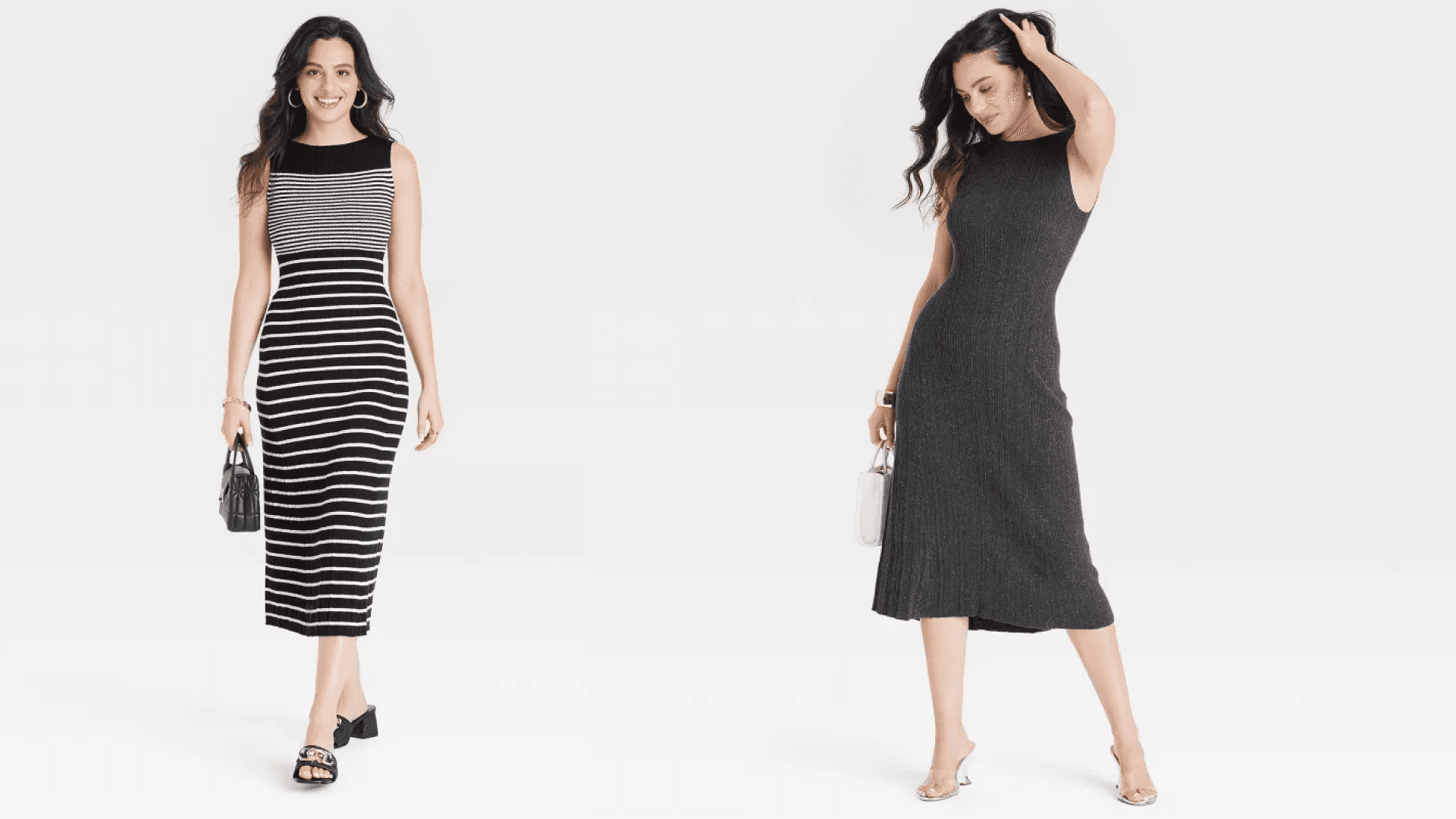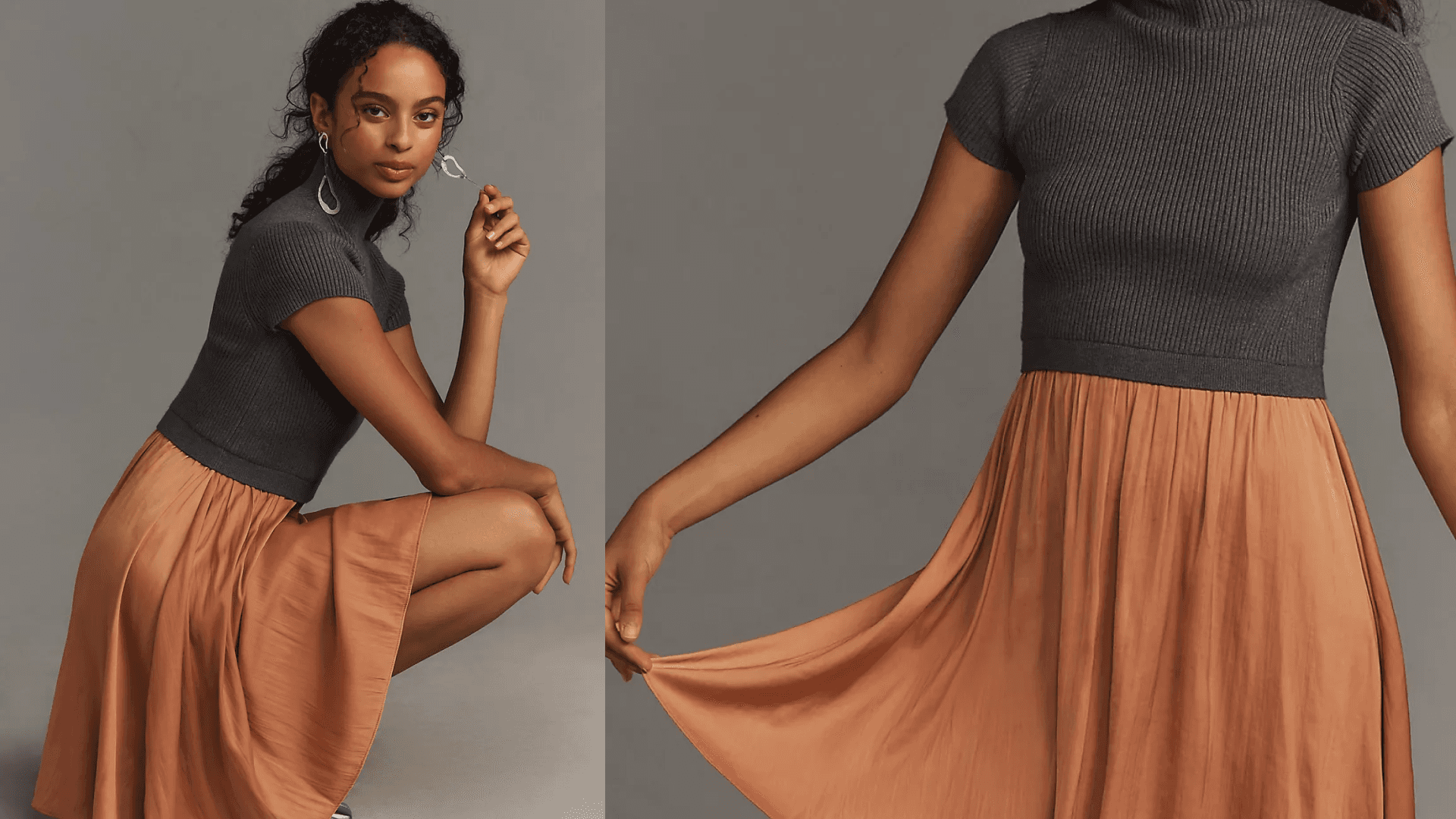 A faux-plisse midi sweater dress…