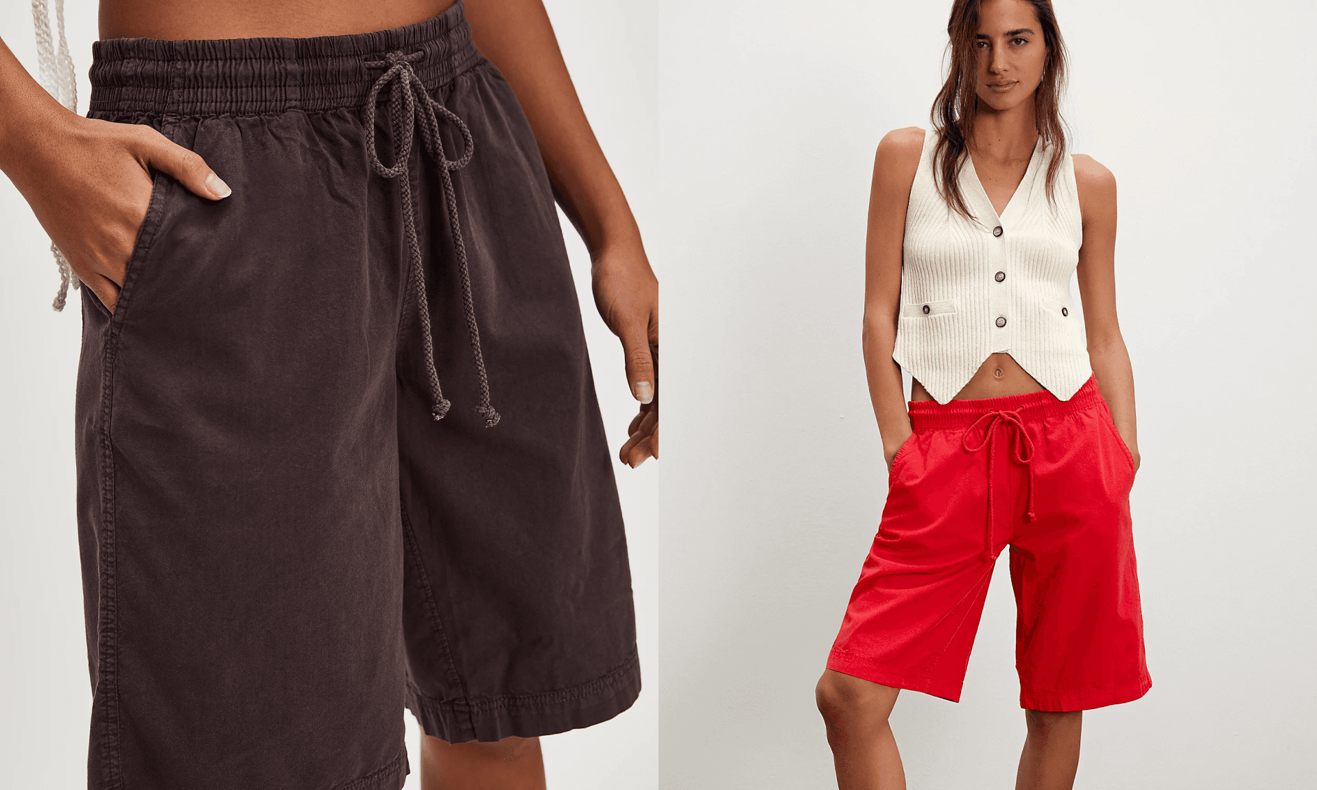 Bermuda-style shorts are officially back. These have an elastic waistband that makes them feel like slipping on your go-to sweats, while their loose fit and bold colors make them a great option for any casual outing on your cal. Throw them on with a classic button-down or a stretchy ribbed tee for a look that’s both chic and comfortable. ($58)