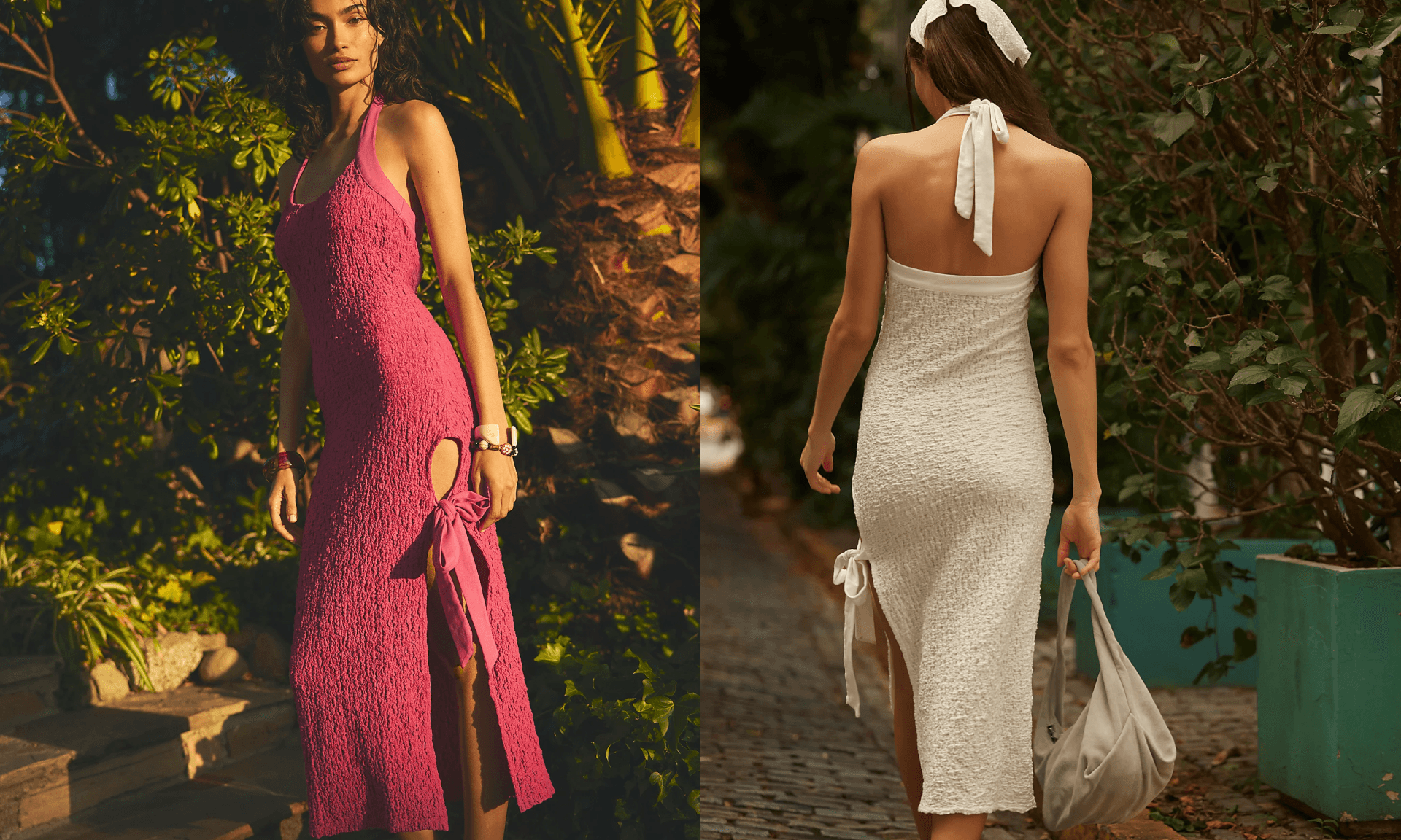 If you're beach-bound, this one's for you. This midi dress is made of a unique, textured fabric that's form-fitting but not too tight, so you'll be comfortable dancing, eating, lounging, or whatever else is on your itinerary. We’re giving it extra style points for the bow detail, peekaboo cutout along the thigh, and adjustable halter top. Let's just say, it's giving The White Lotus. ($98)