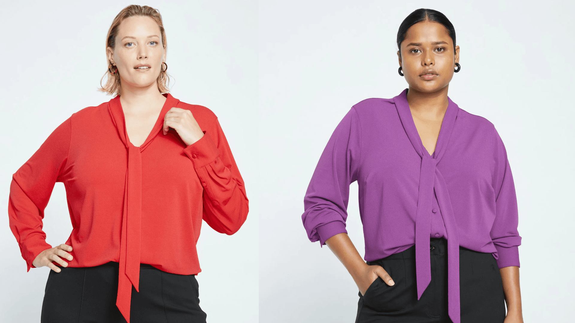 Nothing beats throwing on your go-to blouse and pants, and heading out the door. It’s made of a crepe jersey that effortlessly drapes. You can wear the necktie open or tied, depending on your preference. There’s hidden stretch, bust darts, and a curved hem for extra comfort. It’s bound to be your new favorite…so much so that you might need to buy another color. ($138, Universal Standard)
