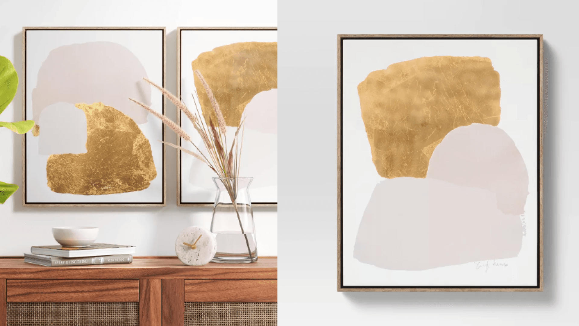 One HQ’r has been raving about her $50 framed canvas from Tarjay and we’ve been eyeing it ever since. It might feel super obvious because Target is a tried-and-true favorite, but their art options are not to be slept on. You can easily find pieces under $100, from subtle framed canvases to statement sets (yep, sets). If you’re looking for an excuse for another Target trip, take this as your sign.