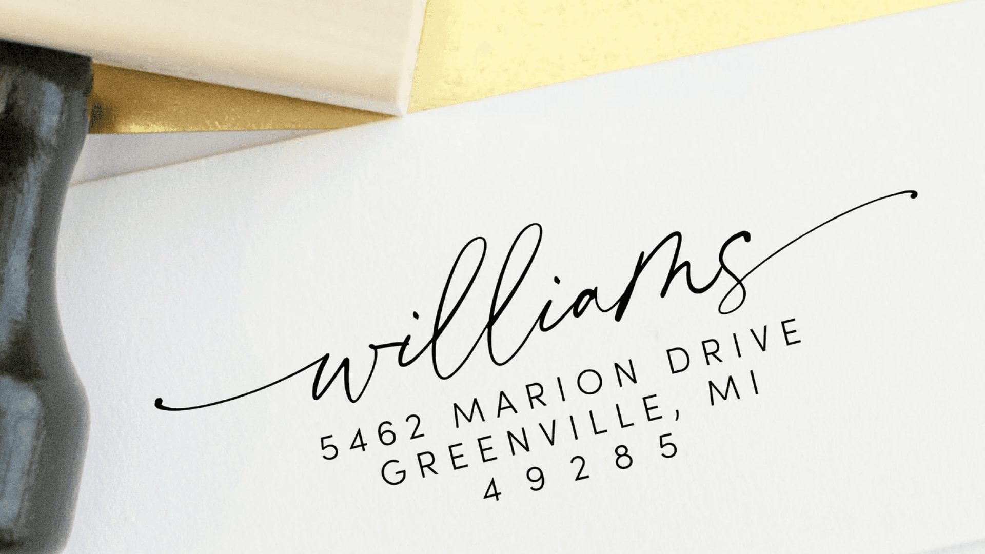 A custom return-address stamp for all those thank you cards they’re about to send…