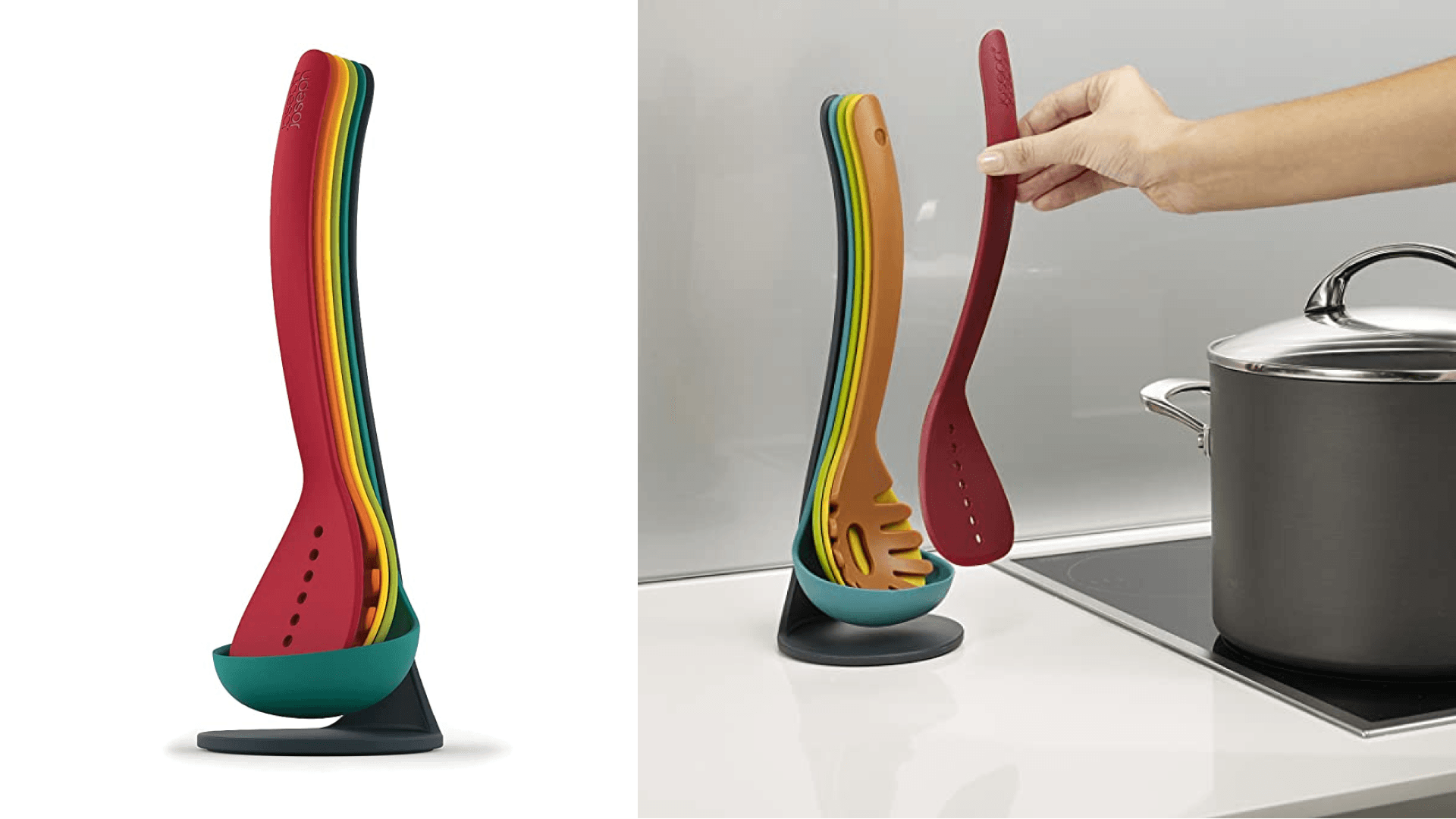 A five-piece kitchen utensil set that nests together…