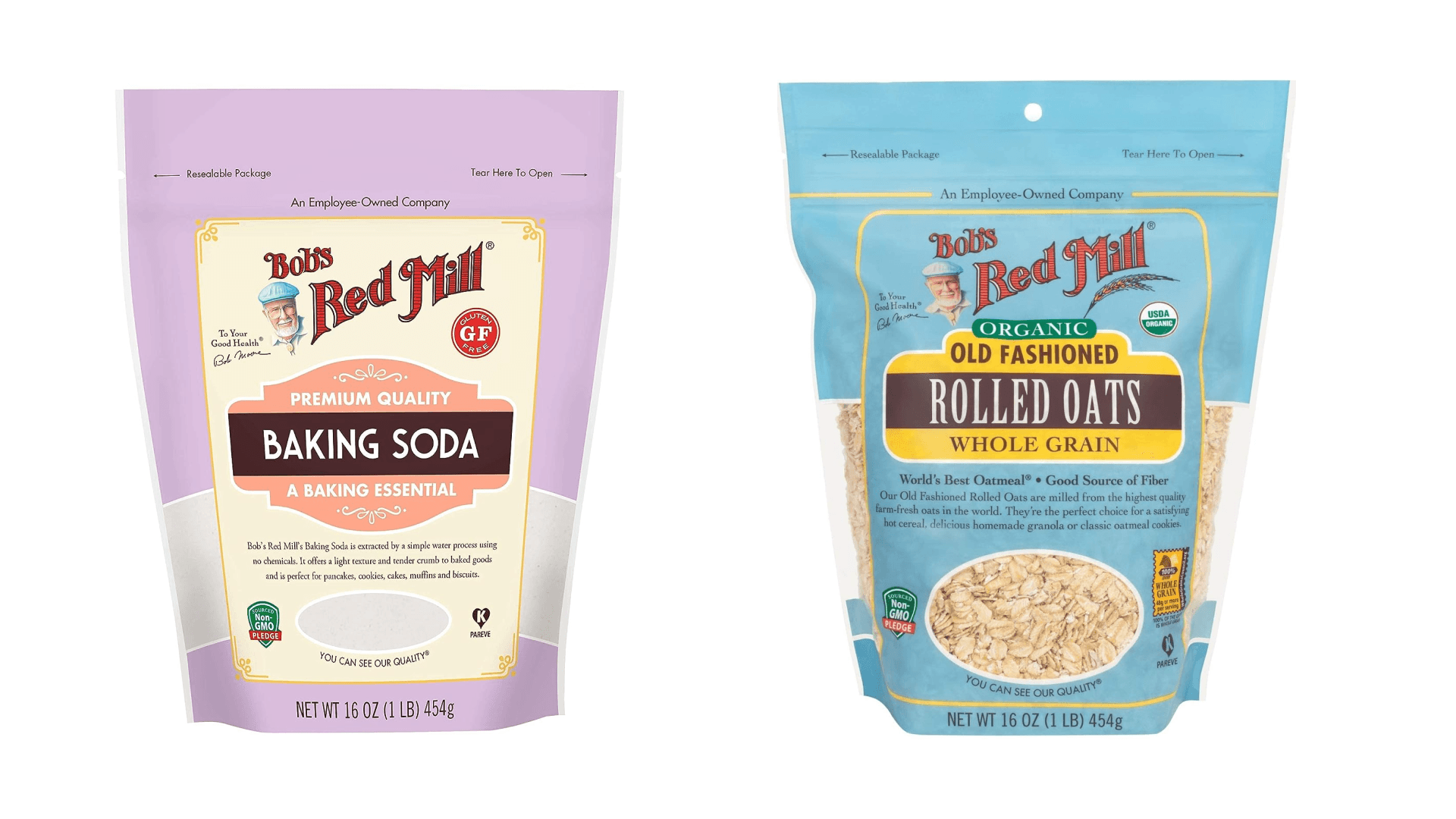 Bob’s Red Mill’s baking soda, powder, and oats…