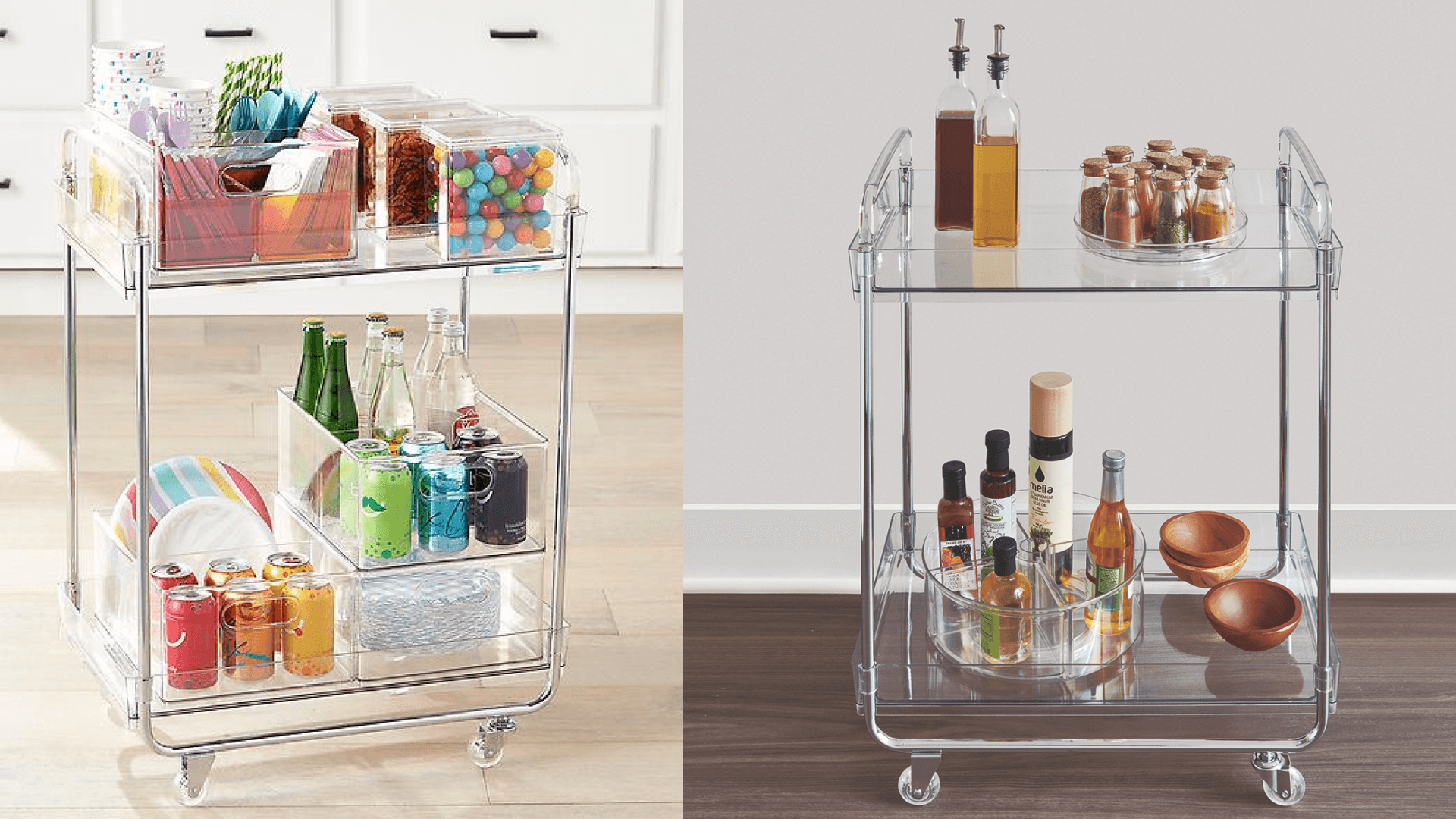 This acts as my pantry in my New York City apartment. I love it because it’s clear, so it seamlessly fits into my space and is customizable thanks to The Home Edit’s variety of bins that can fit in the top and bottom. The whole thing wipes clean easily and I use it to store snacks, dry goods, vinegars, and pretty much anything that doesn’t require refrigeration. If you live in an apartment, or your home doesn’t have a designated pantry area, a bar cart is an underrated, yet practical option. ($129.99, The Container Store)