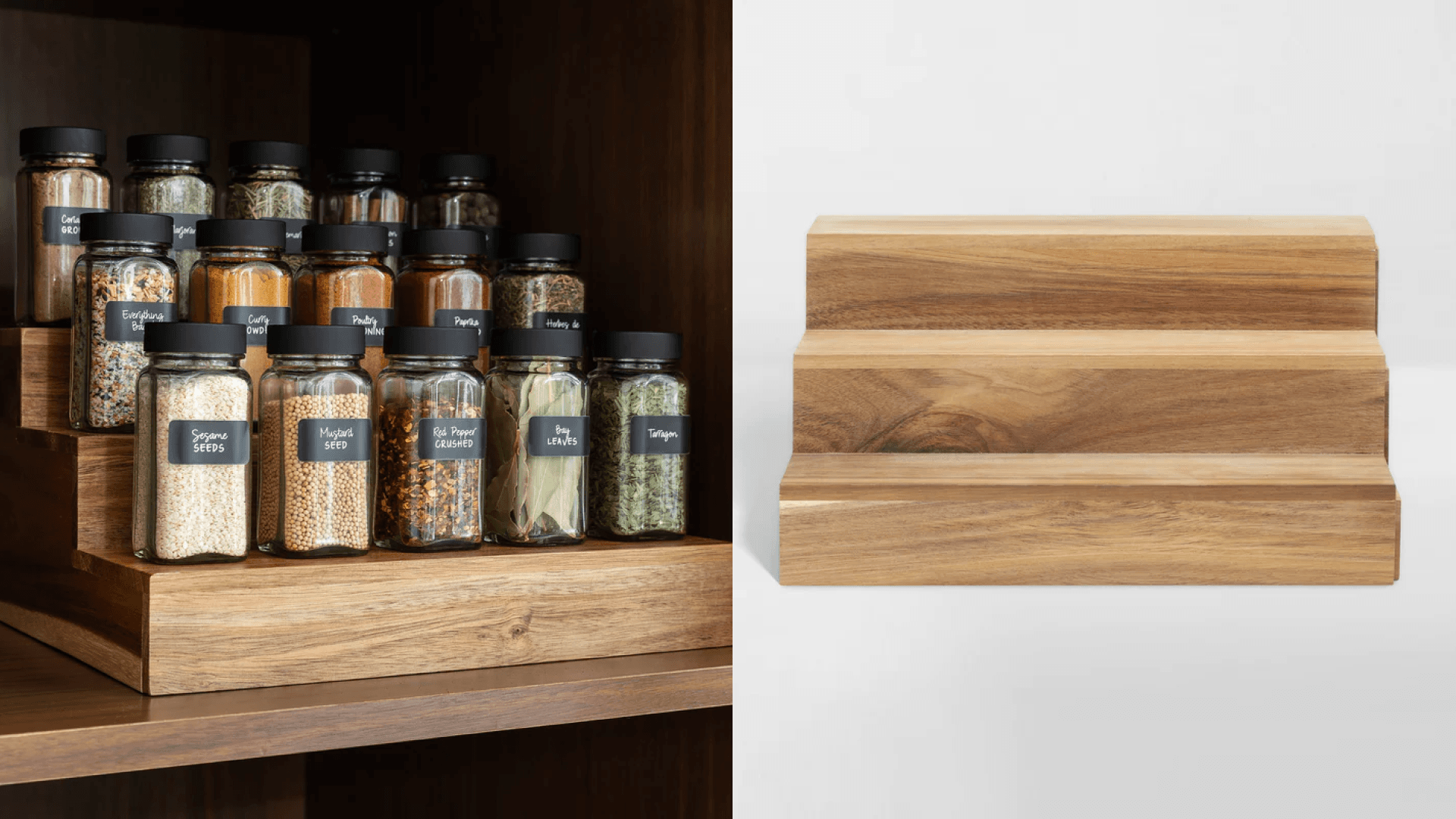 When I interviewed the founders of NEAT Method, they raved about how multifunctional a shelf riser can be. They suggested them to “arrange canned goods, spices, and condiments for optimal visibility and to prevent losing items at the back of shelves.” Some can even expand to accommodate more storage. While many love a lazy Susan for spice storage, I love a tiered version because I can see everything directly. ($42, NEAT Method)