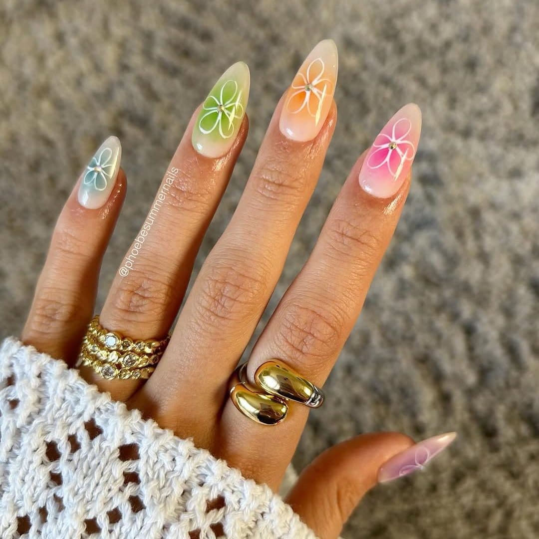 Whether you opt for neons or shimmers, a rainbow-inspired gradient manicure is perfect for the warmer weather. It feels festive, fun, and perfectly light-hearted for the season.