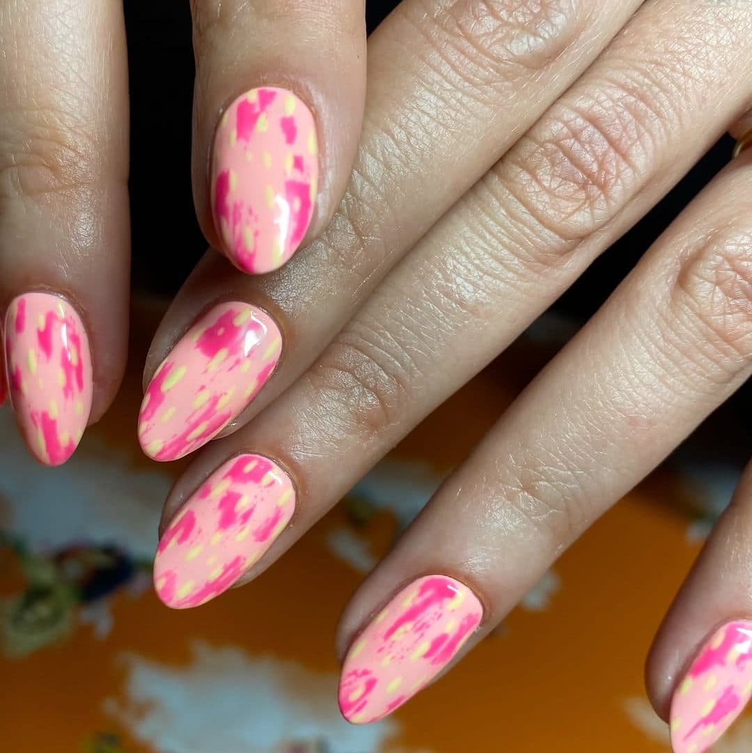 Get the look: You can't mess up abstract blobs. Recreate using Pleasing's Nail Polish in Pinechrome ($18), One Legged Flamingo ($18), Sticky Segments ($18), Pea in the Punch ($18), and Grape Feet ($18).