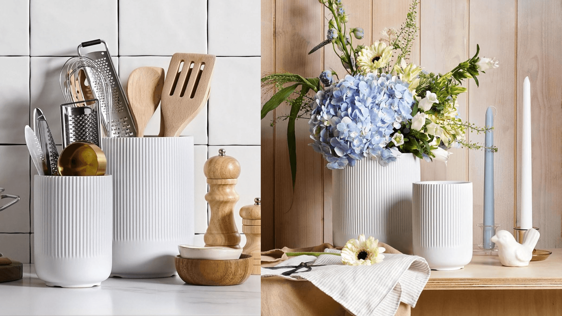 Can you tell I hate disorganized utensils? This is a noteworthy countertop option if you want to avoid messy drawer storage at all costs. This bundle comes with two ribbed vessels that also double as vases. ({{dynamicPrice}}, Amazon)