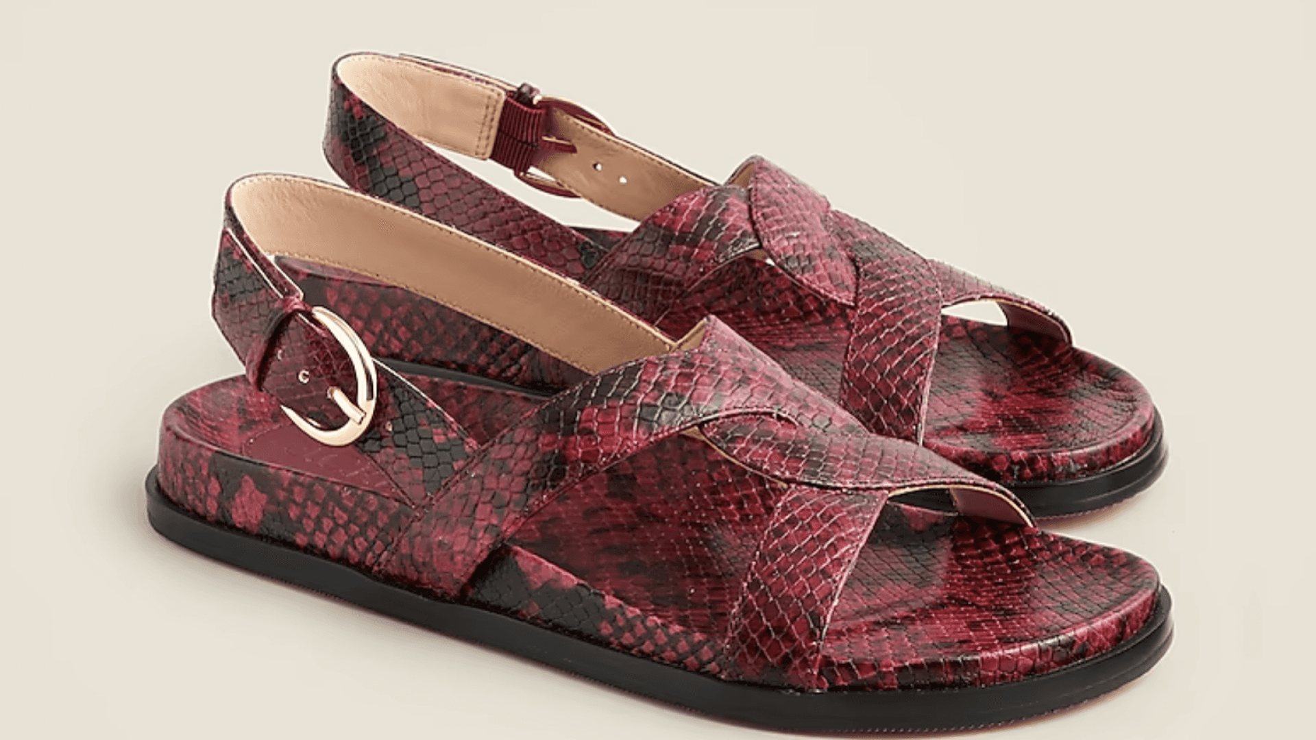 If you’re skeptical about wearing sandals to the office, you need these. The sole is a little bit thicker so they are more substantial and the criss-cross detailing provides a lot of coverage. Plus, the gold hardware and snake-embossed leather dresses them up. These would be perfect with a white dress. ($204.99, J. Crew)