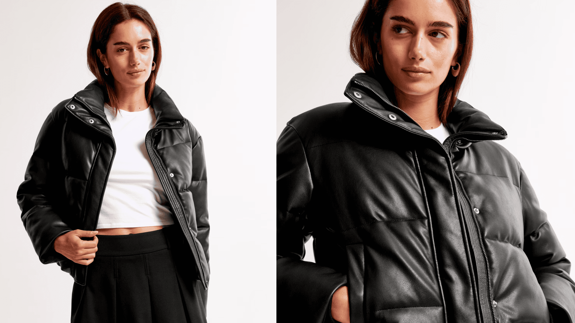 This puffy jacket is part bomber, part traditional puffer, but 100% eye-catching. The buttery-soft vegan leather and 100% recycled filling keep you ultra-warm for hours. Since this jacket hits just below the waist, we recommend pairing it with high-waisted jeans and your favorite chunky boots. ($80, Abercrombie & Fitch)