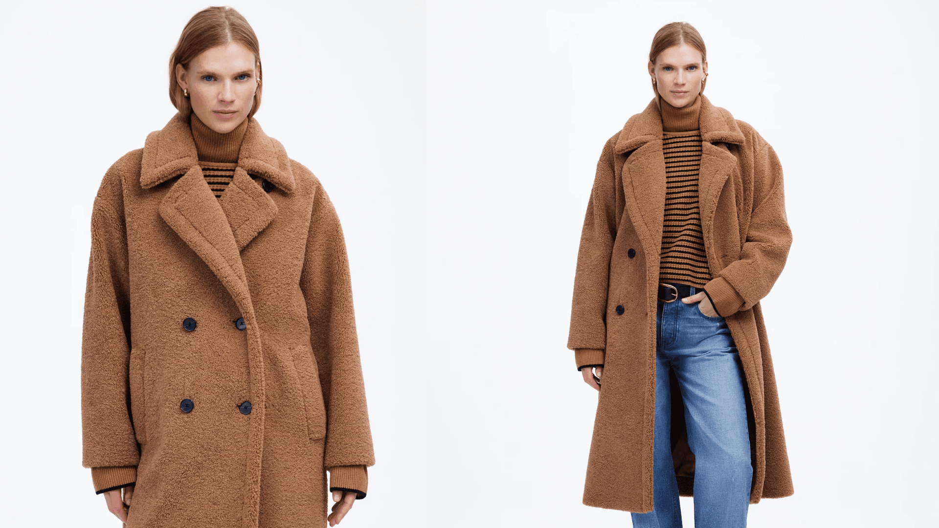 It’s oversized, hitting just below the knee, and feels just like a warm hug. Thanks to the roomy fit, you can comfortably layer it with your thickest sweaters, or even a fleece on truly cold days. Don’t let the material fool you, though. This HQ’r-fave is machine-washable. ($149.99, Madewell)