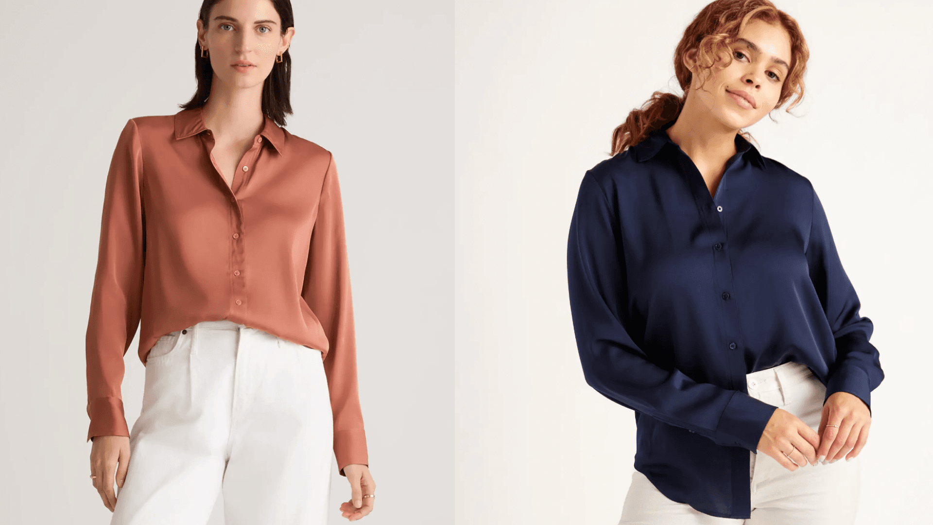 Styling any look is easy when you’re working with a blouse like this. It’s got a classic button-up silhouette that looks crisp and clean while holding up in the washing machine. This one comes in more colors than we can even count. ($69.90, Quince)