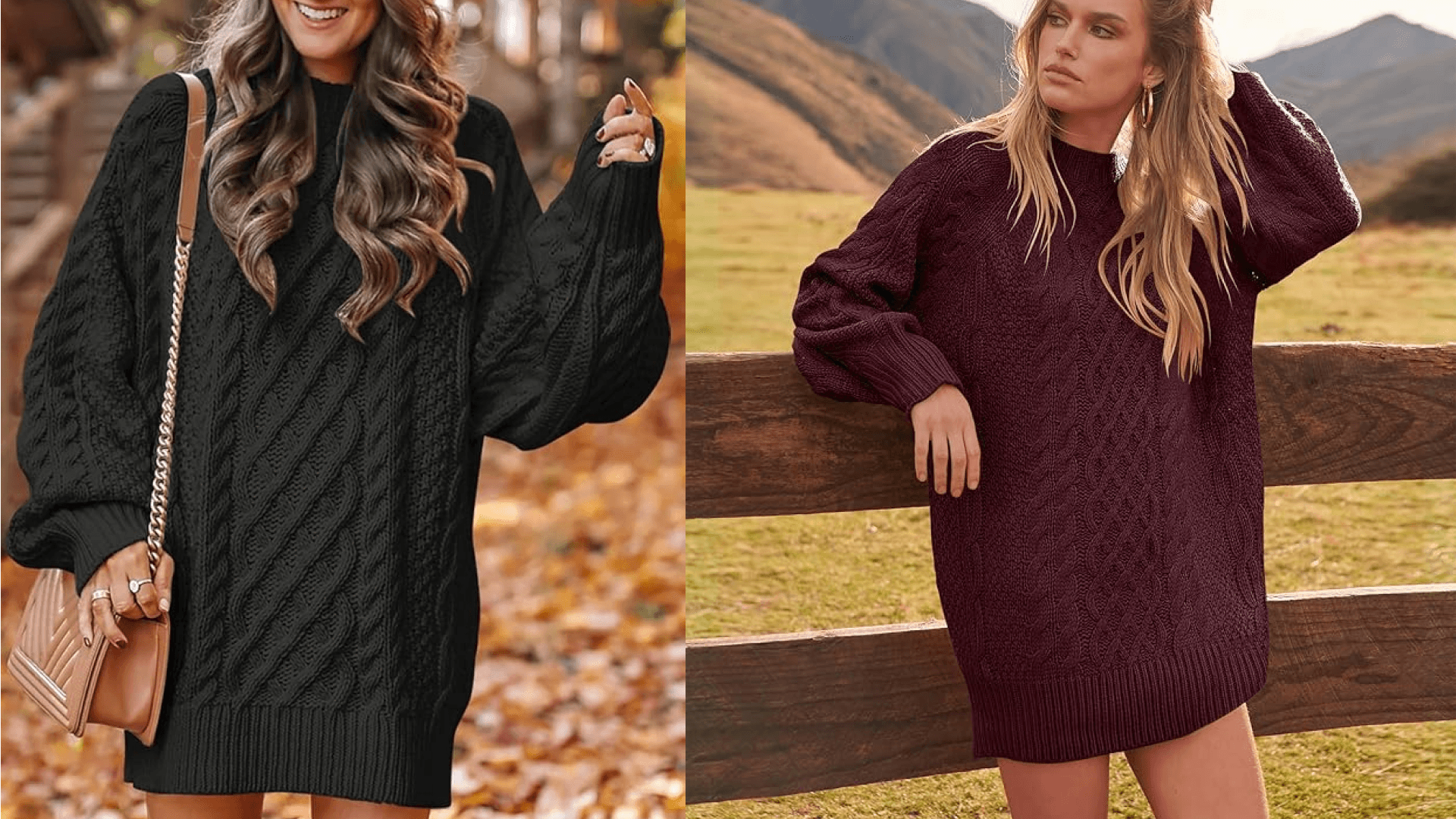 With tights, knee-high boots, belts, winter hats…you can’t go wrong with this wardrobe essential. It comes in 18 colors and has a slightly oversized fit — literally your favorite classic cable-knit sweater, in mini dress form. For the office, this would look amazing with tights, boots, and an oversized blazer. ({{dynamicPrice}}, Amazon)