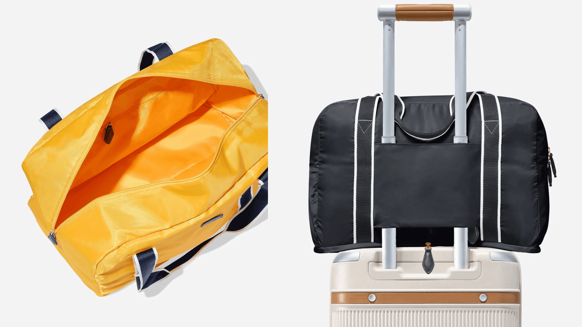 We’ve all been there: returning from a trip with more than we left with. Which is why Paravel is one of our favorite brands for bags. This classic duffle is made from water-resistant nylon that folds up efficiently. You can take it with you when you travel or keep it close at all times to ensure you’ll always be hands-free (which in our eyes counts as a little luxury). ($75, Paravel)