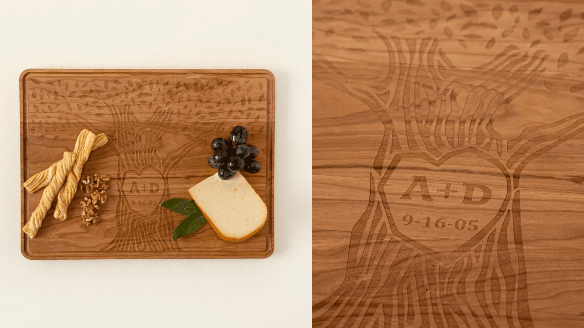 Carving your initials into a tree is sweet…but it’s not exactly something you can wrap. Here’s a version of the same gesture that’s more, well, material. This cherrywood cutting board has a tree design you can customize with your initials and an anniversary or other special date. Perfect for the couple who loves prepping meals together for date nights in. ($85, Uncommon Goods)