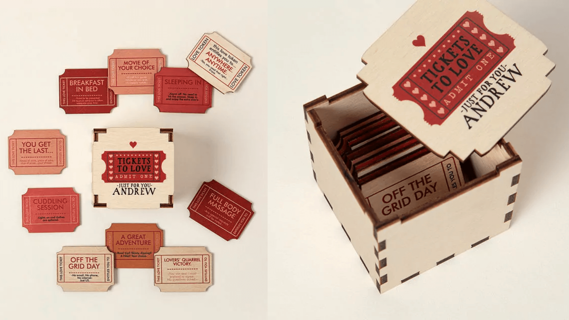 This customizable box of pretty wooden “tickets” is kinda like those coupon books you used to make your parents for the holidays when you forgot to buy them actual gifts. Just a lot more thoughtful. Pick 10 tickets from 40 options, ranging from “movie of your choice” and “off the grid day” to “full body massage” and “a strip tease.” (Hey, we said these weren’t your parents’ holiday gifts.) ($40, Uncommon Goods)