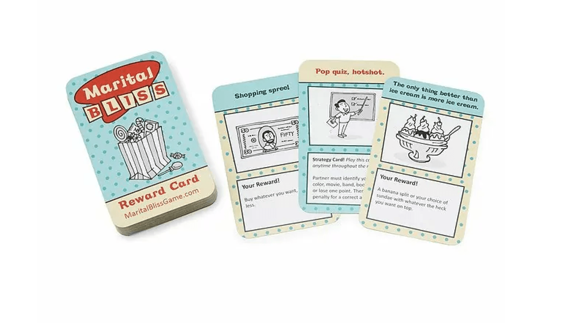 This card game is perfect if you like to get a little competitive with your spouse. Every round takes a week, during which you have secret “missions” (i.e., nice things you’re supposed to do for the other person, like unloading groceries or helping with laundry). If you succeed in winning the most points, you get a reward. But ultimately? You both win. ($15, Uncommon Goods)