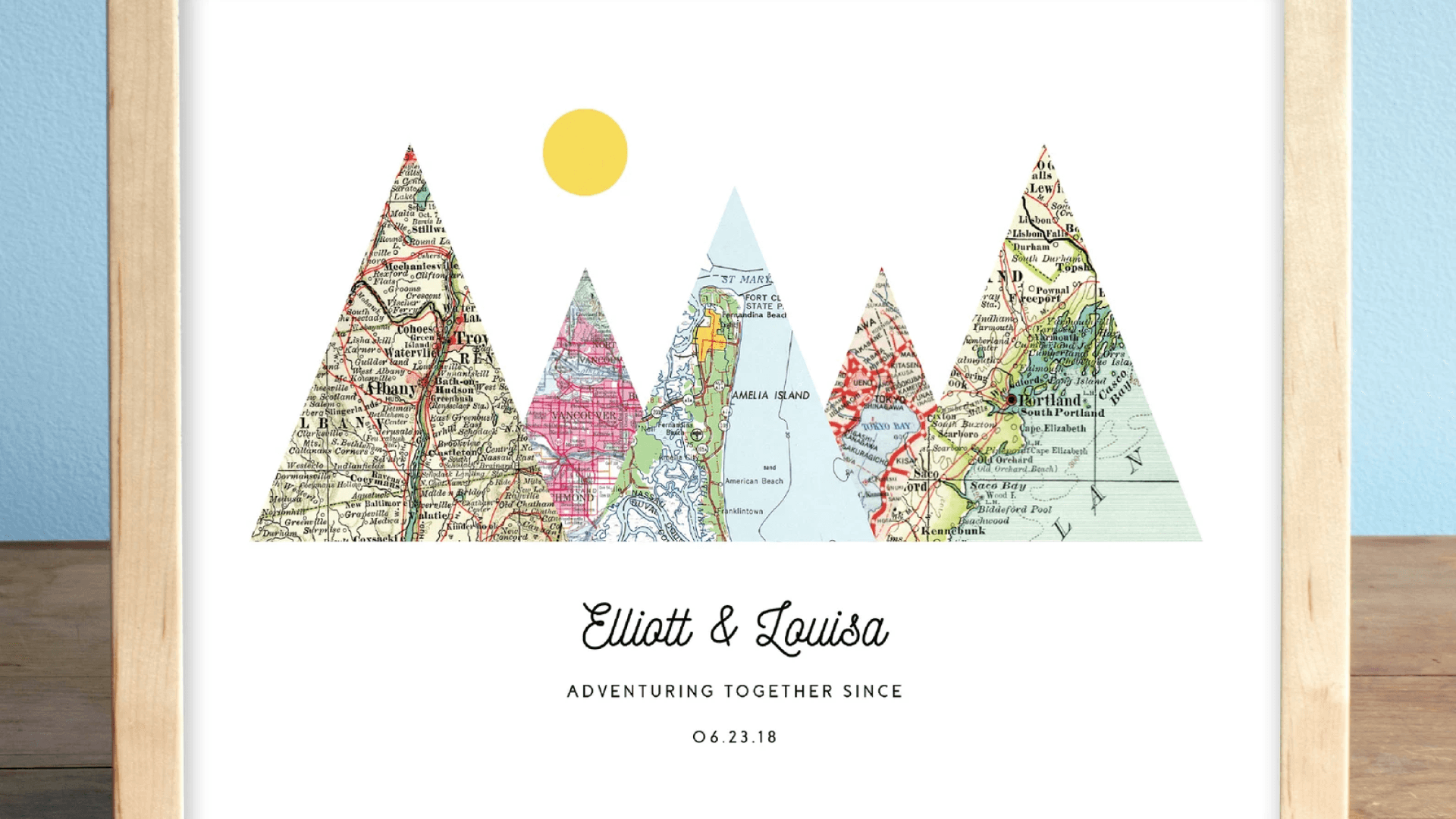 If trips have played a significant part in your journey as a couple, here’s a thoughtful gift. This custom art can commemorate five important locations from your life together, and with multiple size and framing options, it’s also a fit for lots of different budgets. ($51+, AGierDesign via Etsy)