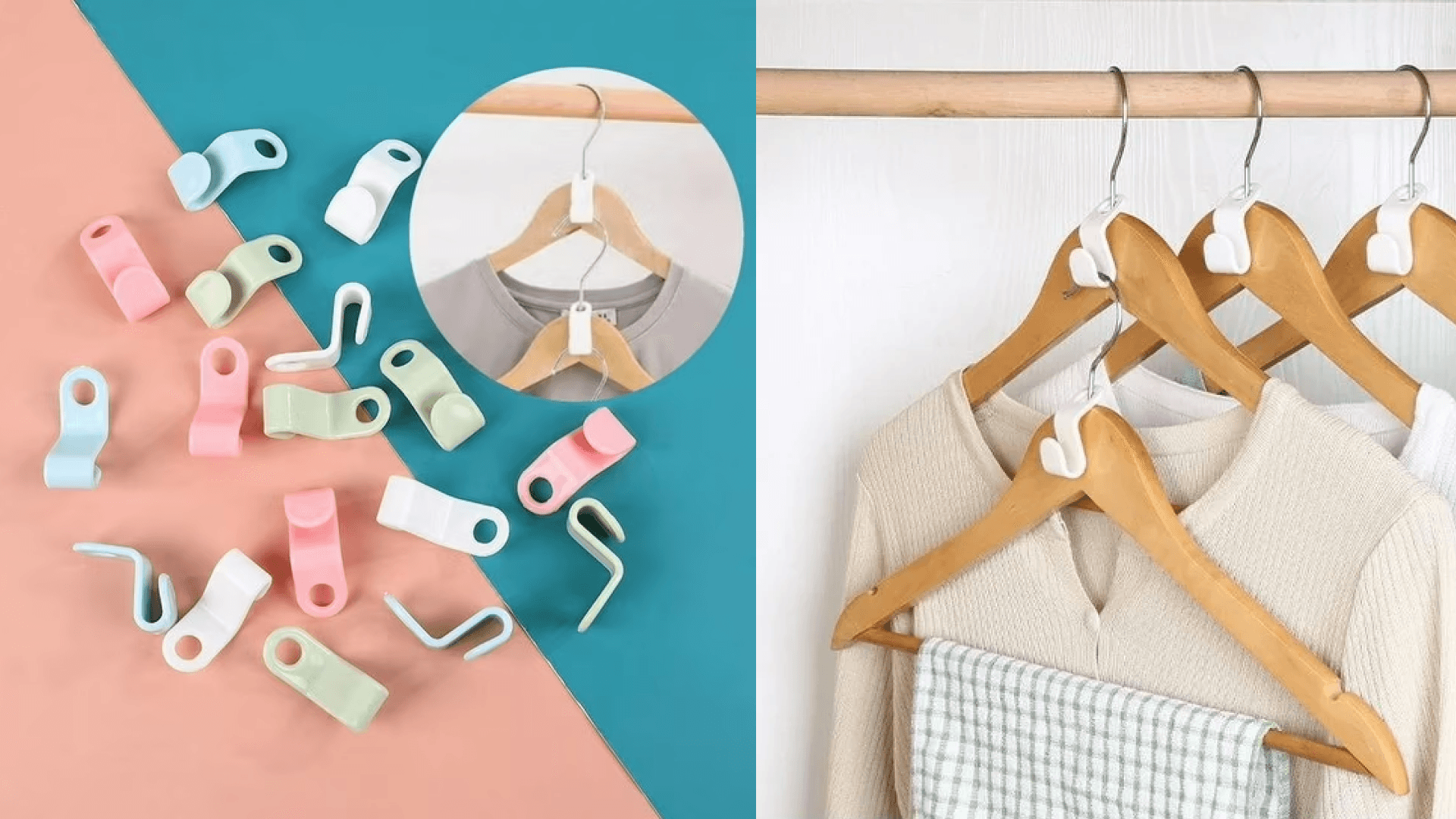These hanger hooks will double your closet space in just a few seconds. Just add one hook over the neck of your hanger. You can then hang another piece of clothing from that hook. The tiered system allows you to work with vertical space. We suggest holding up to three pieces per hanger.