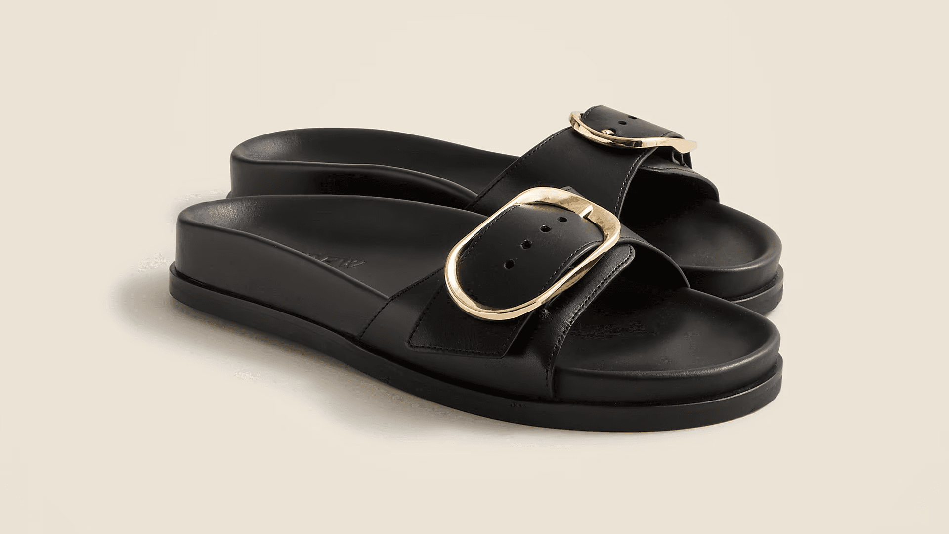 On the days it’s too unbearable to even think about getting dressed for work, you’ll need a dependable pair of sandals. We love this pair from J.Crew for its chunky sole (so you don’t have to worry about your feet getting dirty), and the oversized buckle detailing. It comes in a suede version, but we prefer the leather style for longevity and durability. ($198, J.Crew)