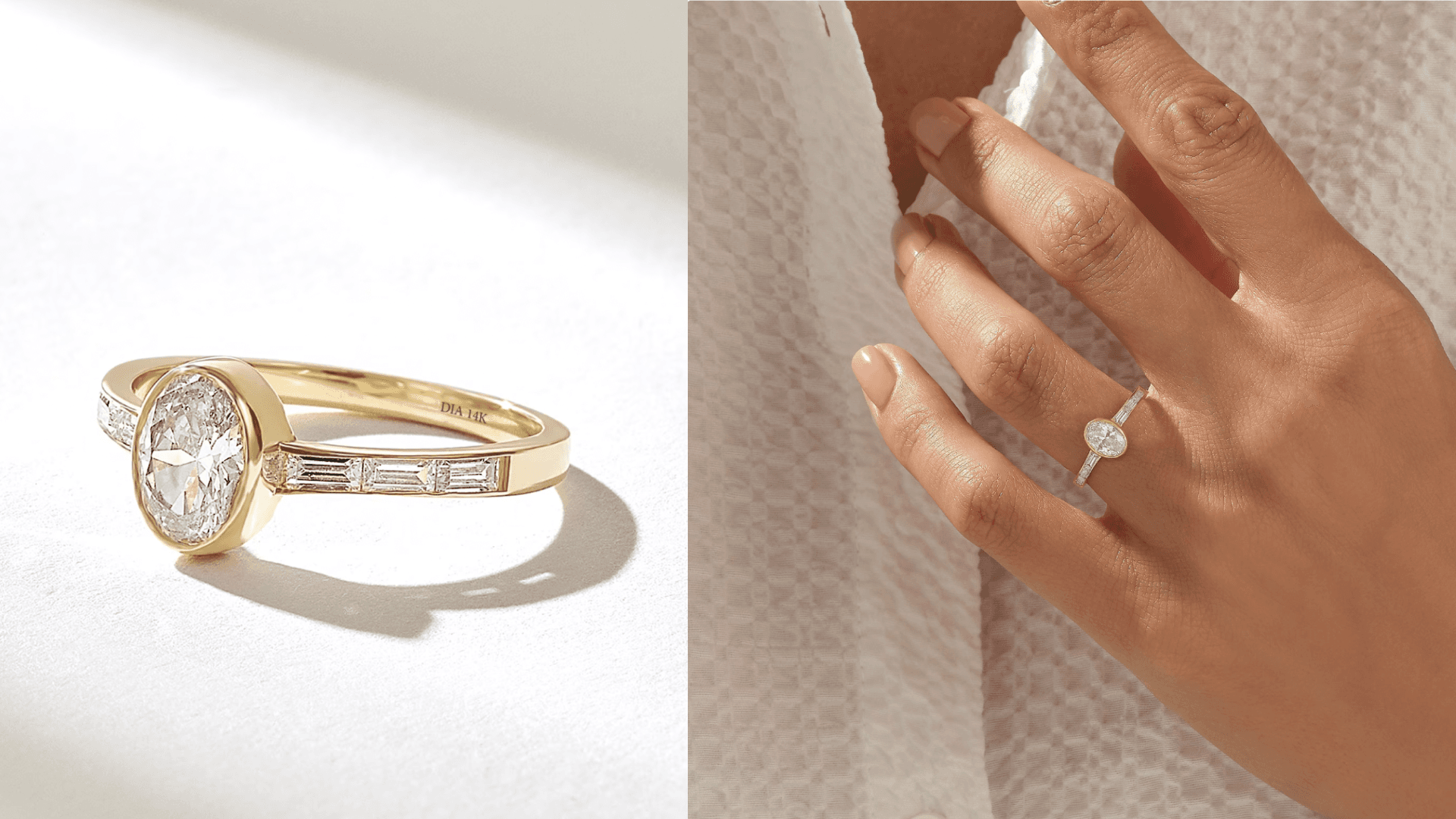 FYI, oval engagement rings are here to stay. This beauty is simple, elegant, and made with ethically-sourced diamonds. Plus, the thicker band adds a subtle statement. You can personalize it too, so reach out to the seller to chat about custom options. ($1,903.99+, DiaFineJewelry via Etsy)