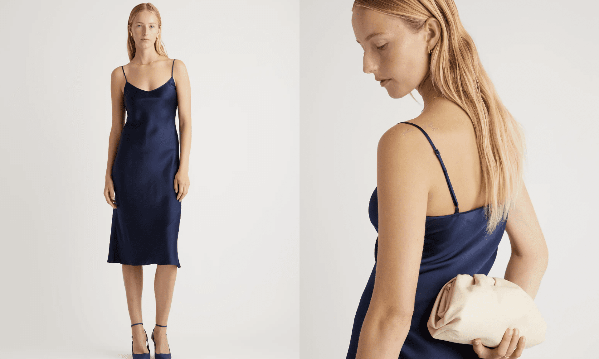 With this dress, you don’t have to worry about dry cleaning. It’s made of a low-maintenance mulberry silk that’s soft and thermoregulating. We love that it has a midi-, bias-cut and comes in 21 different colors. Just wash it on the delicate cycle in a garment bag and hang to dry. ($79.90, Quince)