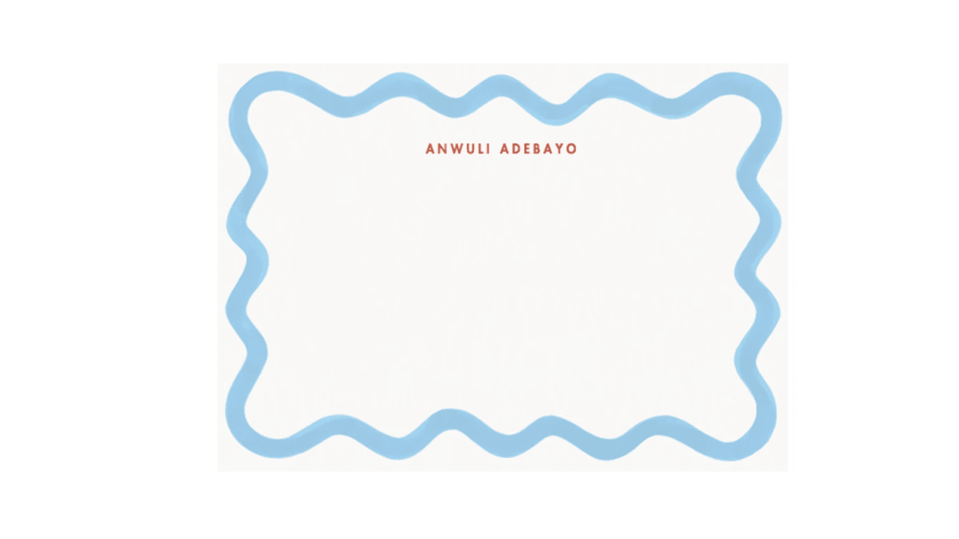 Friends don’t let friends use overly formal stationery. This mostly blank design from Papier has a funky scalloped design and comes in nine bright hues. You can add their name or their favorite phrase to make things feel even more official. ($66/20 cards, Papier)