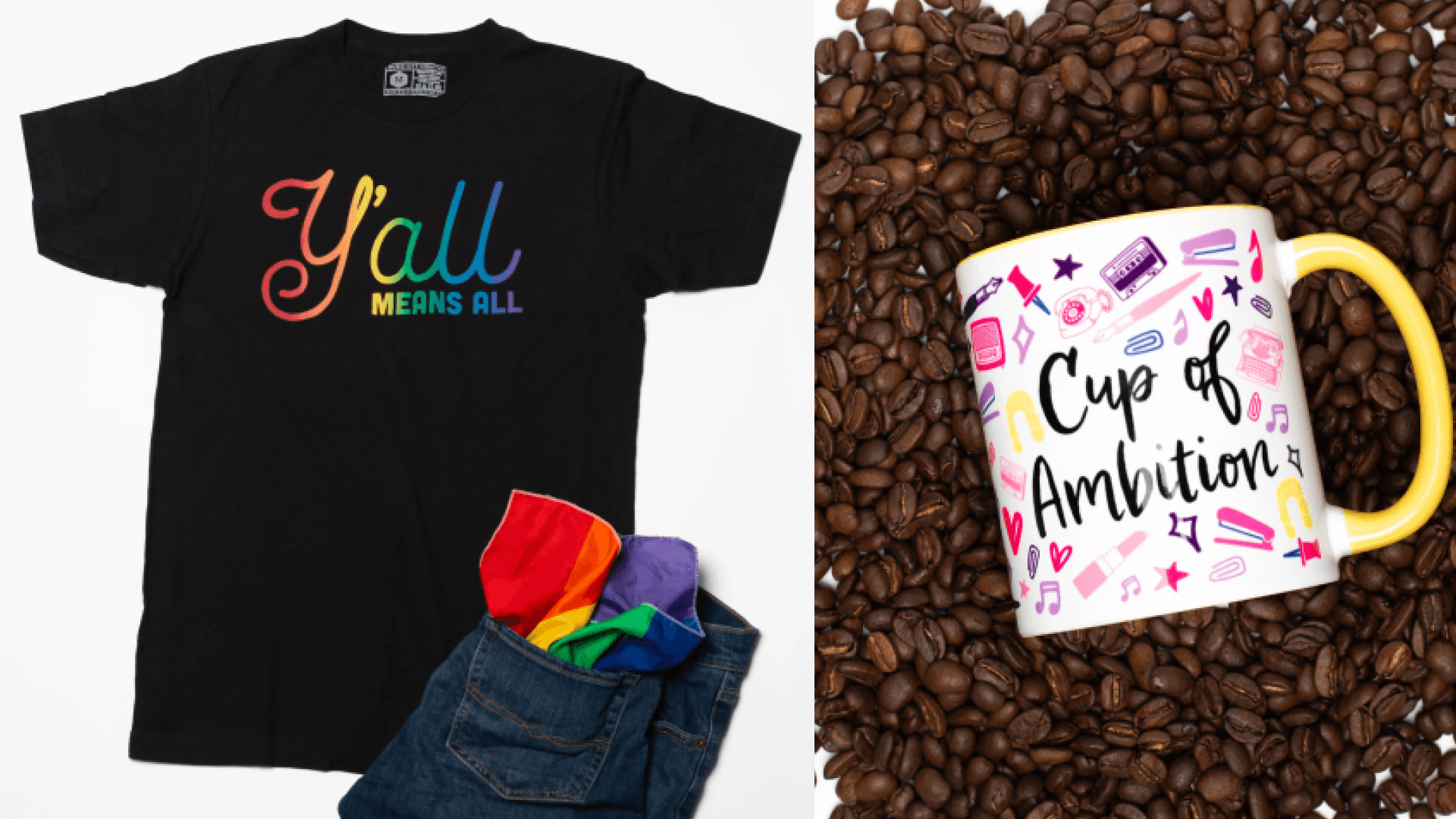 Steven Romeo and Jared Sizemore started their sustainable business during the pandemic. Their goal with the apparel they create is to support their surrounding queer community. They’re most famous for their “Y’all Means All” tee, but we’re also obsessed with this mug that pays homage to Dolly Parton.