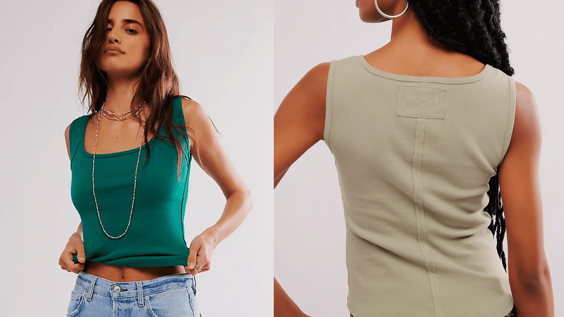 We searched, we saw, we shopped — and now, we are proud to report that the perfect tank top does exist. This tank is comfortably stretchy while providing coverage in all the right places. One of our editors paired it with Free People’s viral barrel jeans and loved how it looked. With 13 colorways to pick from, you'll definitely find something she'll like. ($38)