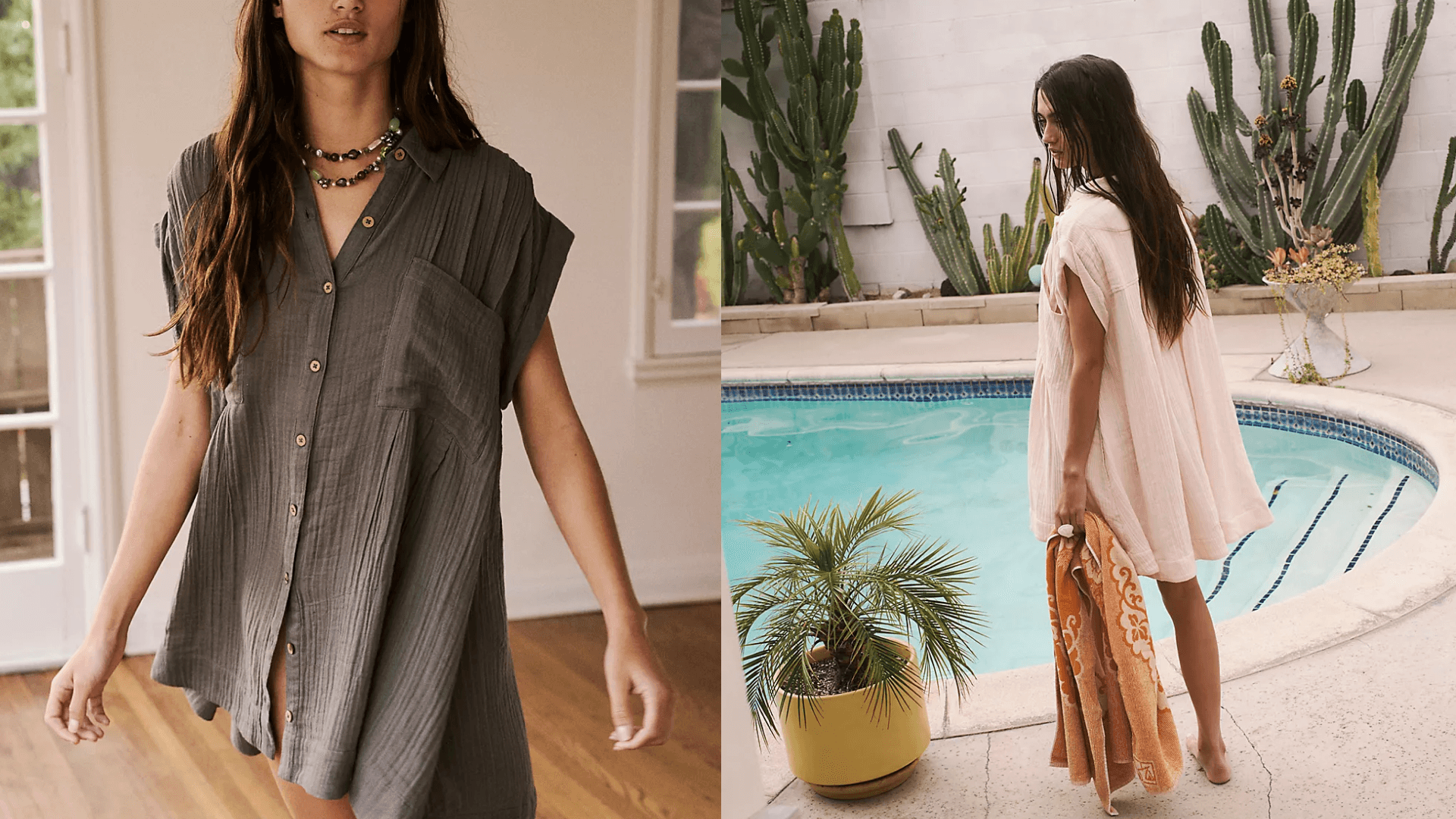 That’s how cute and versatile this button-down tunic is. The capped sleeves and billowy silhouette make it a little trendier than classic oversized button-downs. It can be worn as a top or a swimsuit coverup. Pro tip: many customers paired this look with their favorite boy shorts for additional coverage. ($78)