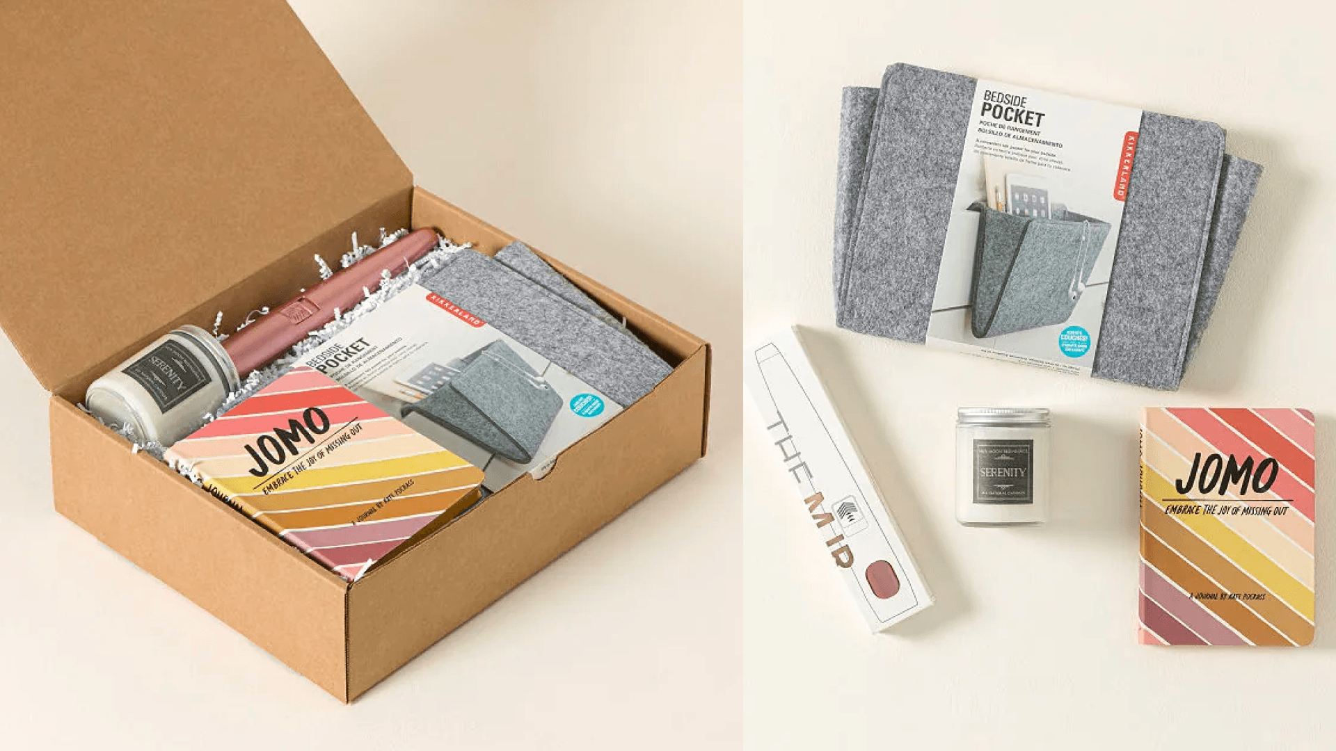 Pre-curated gifts for the win. In our limited-edition bundle with Uncommon Goods, she’ll get a bedside pouch that’ll hold all her essentials, a rose gold rechargeable lighter, a lavender candle, and a clever “Joy of Missing Out” journal. Homebodies, unite. ($75, Uncommon Goods)