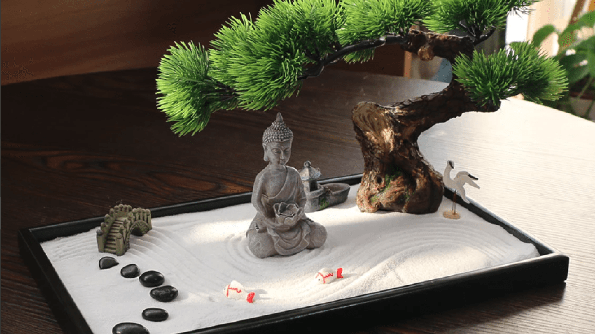 Boost mindfulness with this tabletop zen garden. It comes with miniature tools and decorative pieces to help you to build the perfect landscape, including a wide-tooth rake, rocks, sand, a bridge statue, trees and animals, and a meditation Buddha. Rearrange the scene, rake the sand or rock garden, and feel your stress melt away. ($34.99, Etsy)