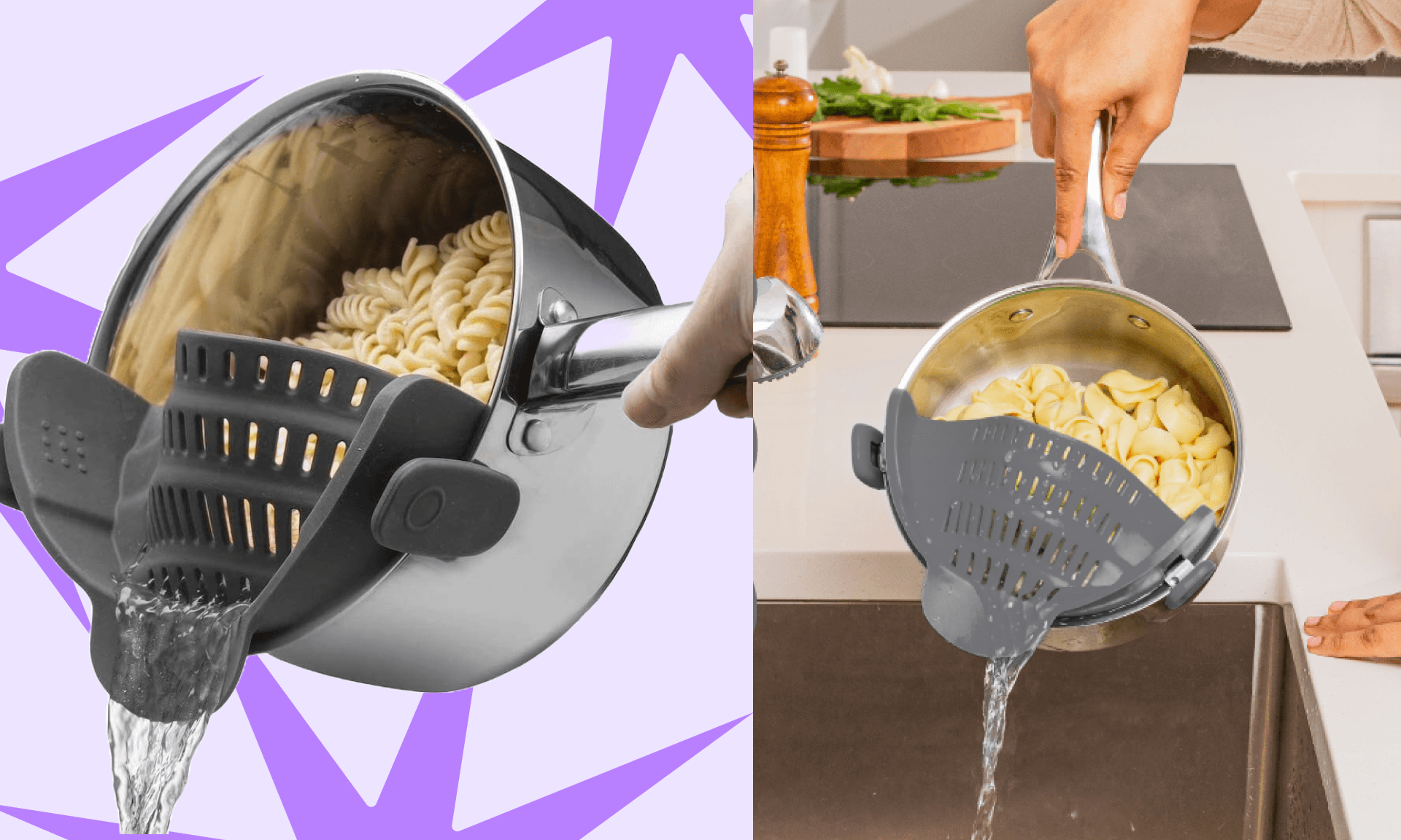 A colander that snaps onto your pan…