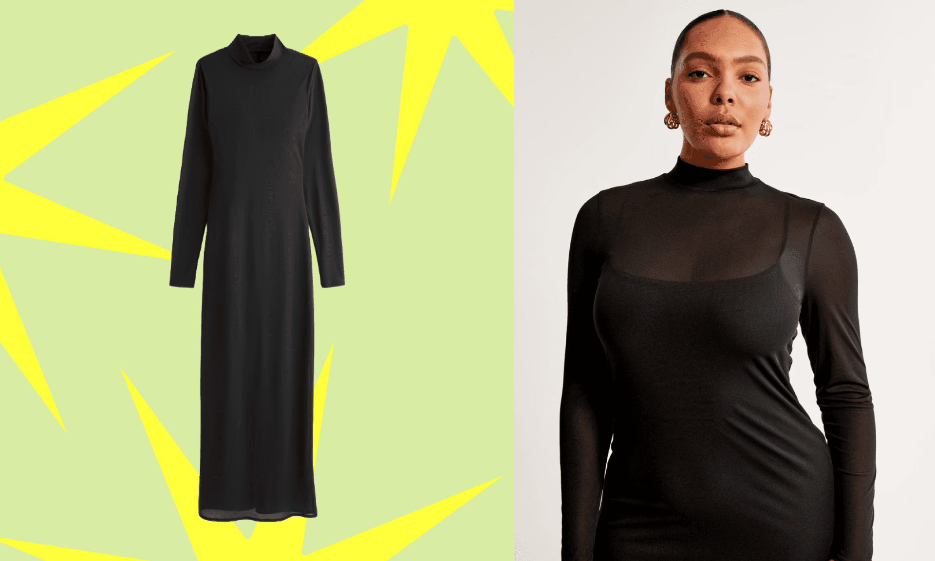 If you’d like to get in on the sheer trend without actually baring it all, this dress is the one for you. It comes in two styles — with either a lace or mesh overlay — and has a built-in slip underneath so you can amp up the sexy vibes without worrying you’re wearing the right underwear. The high neck will keep you covered, whether you’re bopping on the dance floor or leaning over to blow out your birthday candles. ($39.99+, Abercrombie & Fitch)