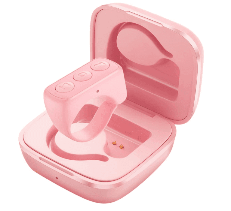 The ring arrived three days after ordering. It comes in a cute little pink chargeable case, much like an AirPods case. The ring itself is adjustable since it’s made with flexible plastic that doesn’t fully close. On the ring, there are three controls: up and down (or left and right) arrows, and a center circle button which is designed to power on the ring, pause content, like content, and lock the home screen.