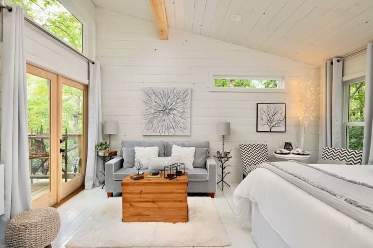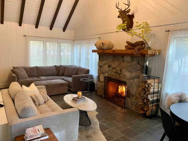 Just 90 minutes from Chicago, Hüüsli is the perfect retreat for couples looking to escape city life and unwind by Lake Michigan. This cozy, Swiss-inspired cabin blends modern updates with vintage charm—think soaring ceilings, a wood-burning fireplace, and a four-season room where you can sip coffee surrounded by nature (minus the bugs). Whether you’re celebrating an anniversary or just craving a quiet weekend away, Hüüsli offers the kind of charm and tranquility that makes you want to stay just a little longer.
