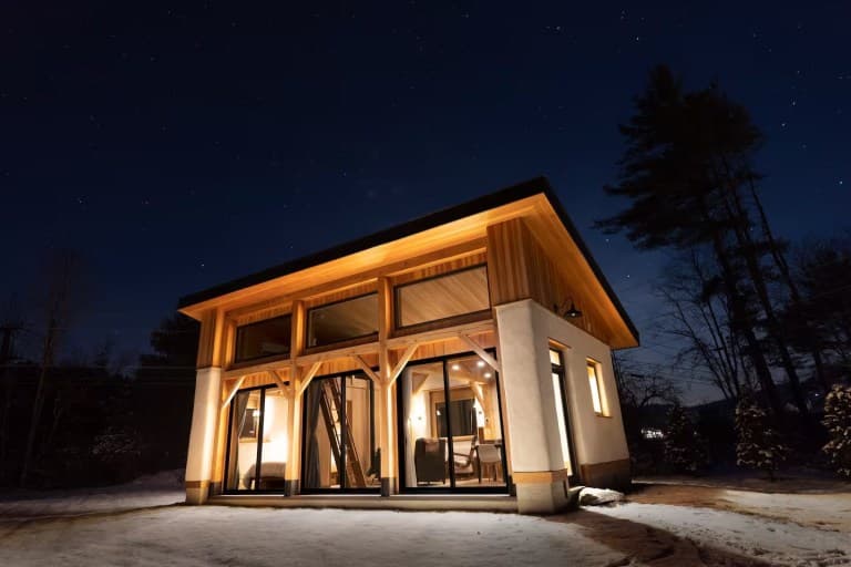 Just two hours from NYC, Postcard Cabins in Roscoe, NY, is your gateway to the great outdoors without sacrificing comfort. Nestled on 69 private acres in the Western Catskills, each tiny cabin (formerly Getaway cabins) features a queen bed, kitchenette, en-suite bathroom, and a private outdoor space complete with a fire pit and Adirondack chairs. Bonus: your stay comes with s’mores provisions and fresh coffee, so you can focus on stargazing, exploring nearby trails, or soaking up the serene Pepacton Reservoir.