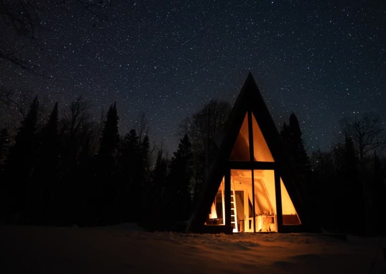 Tucked away on the shores of Lake Superior, this lovely A-frame is about as romantic as it gets. In the winter, Guests can snowshoe private trails, unwind by the fireplace, or stargaze from the wraparound deck—it’s situated in an official dark sky sanctuary. The open floor plan and wide windows give it a light, airy feel, and it’s loaded with amenities. Sweat in the wood-burning sauna, read in the hammock, or roast s’mores over the fire pit.
